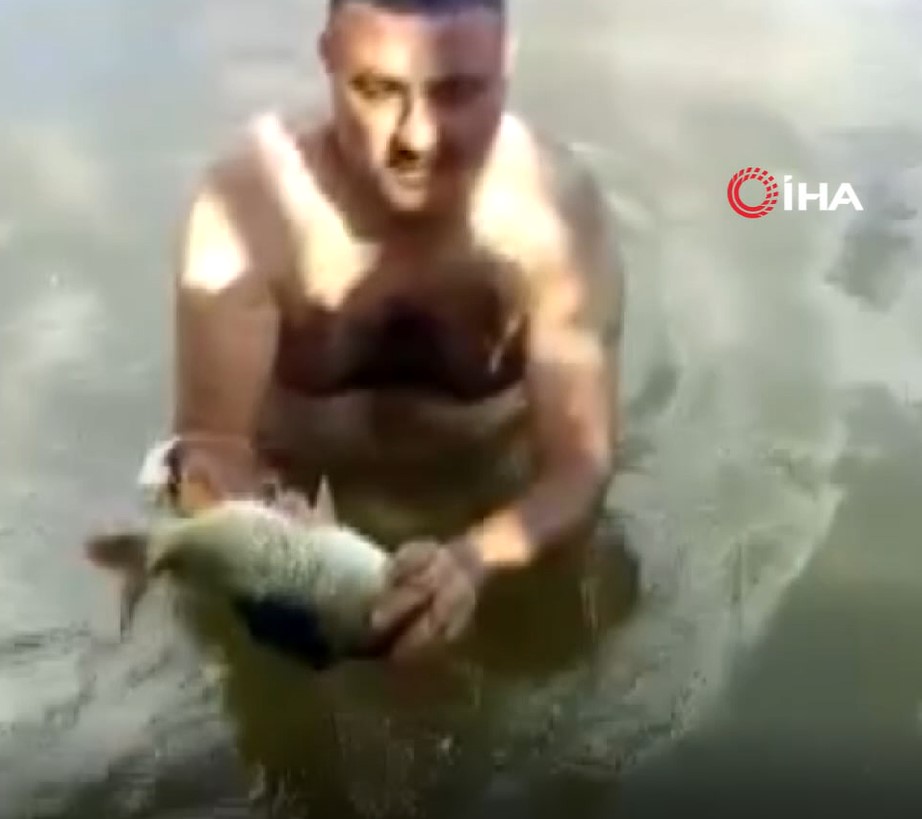 Karasu Nehri'nde eliyle balık tutan adam görenleri şaşkına çevirdi. Bu ilginç yeteneğini hobi haline getiren vatandaş, özellikle sazlık ve çalı diplerindeki balıkları tercih etti.