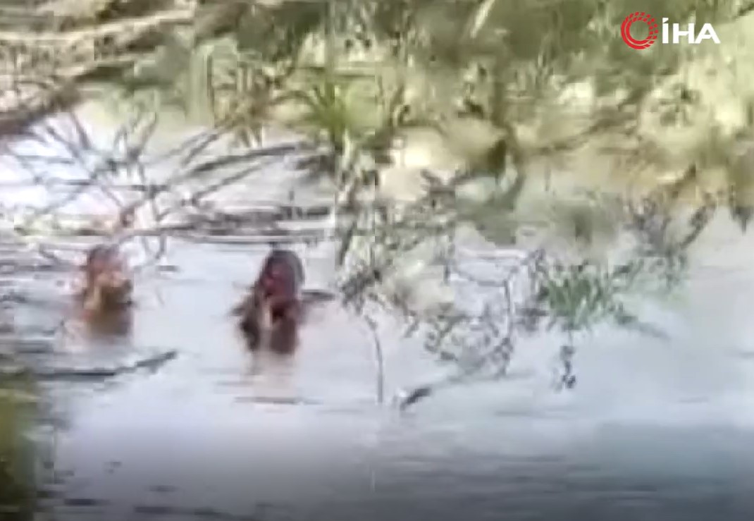 Nefesini tutarak suyun altına dalan Bingöl, kenarda bulunan sazlık ve çalı diplerindeki balıkları çıplak elle avlayarak kendisini bekleyen arkadaşlarını adeta sevince boğuyor.