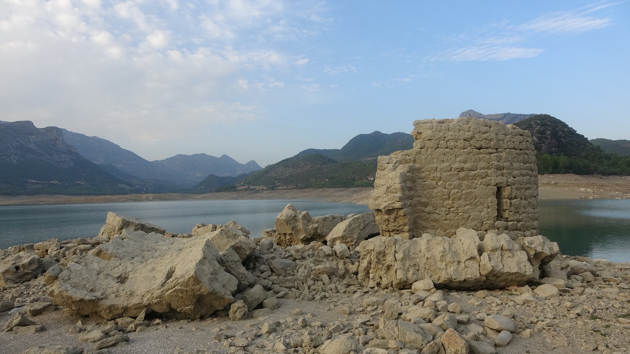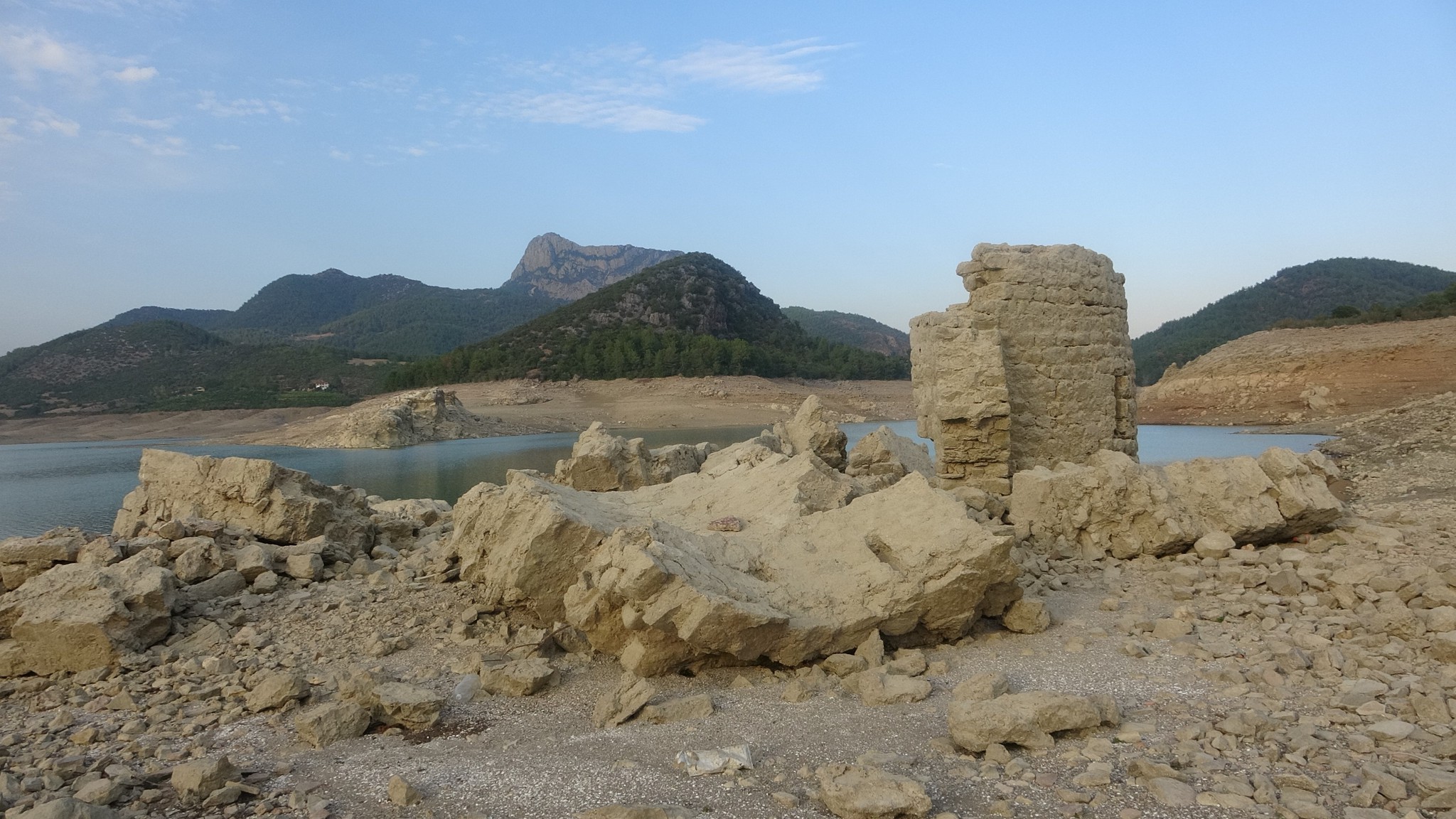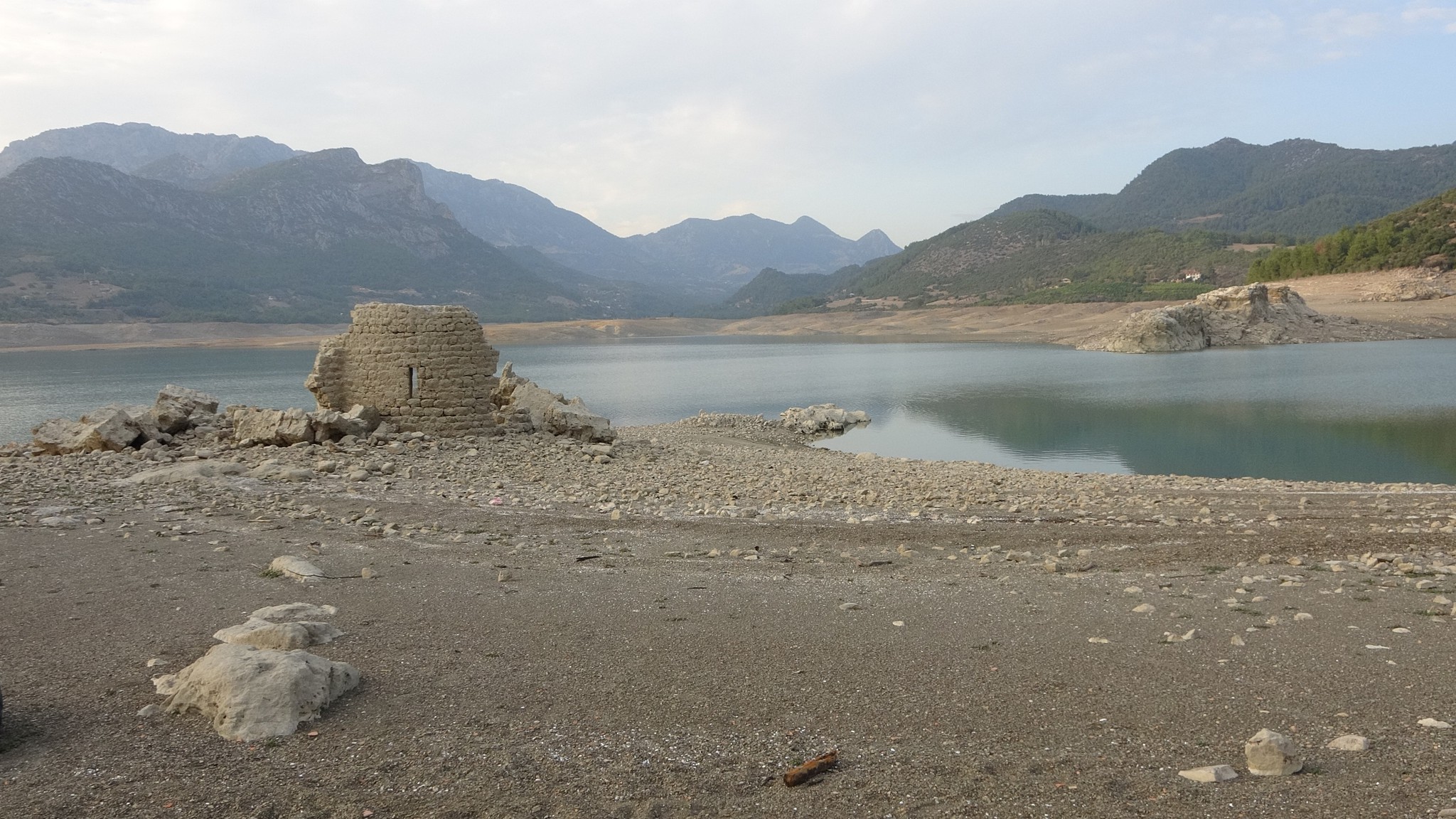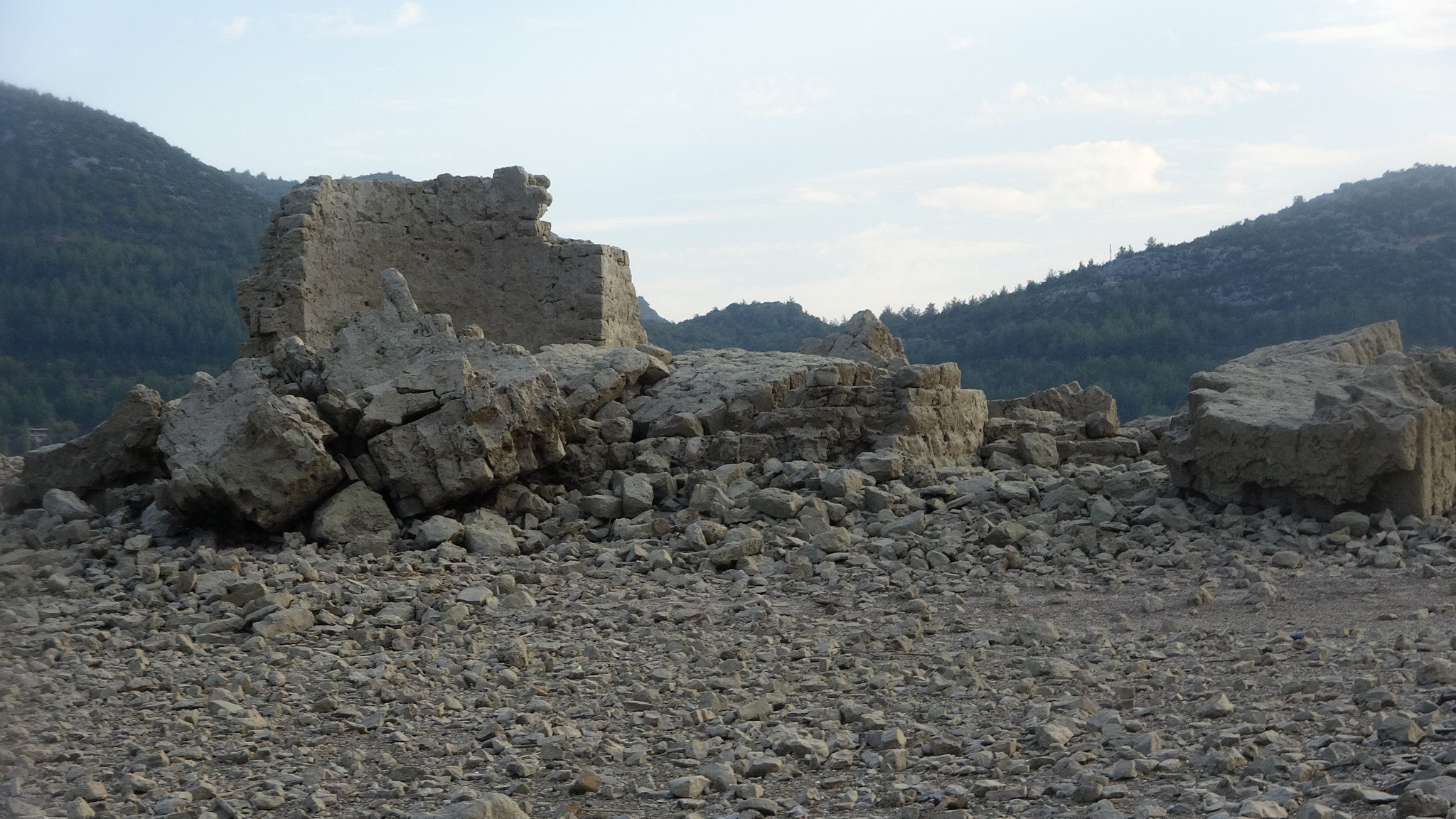 Adana'nın Kozan ilçesinde bulunan baraj gölünde kurak geçen yaz mevsiminden sonra suların iyice çekilmesiyle Roma ve Bizans dönemine ait kilise ve tarihi yapılar gün yüzüne çıktı.