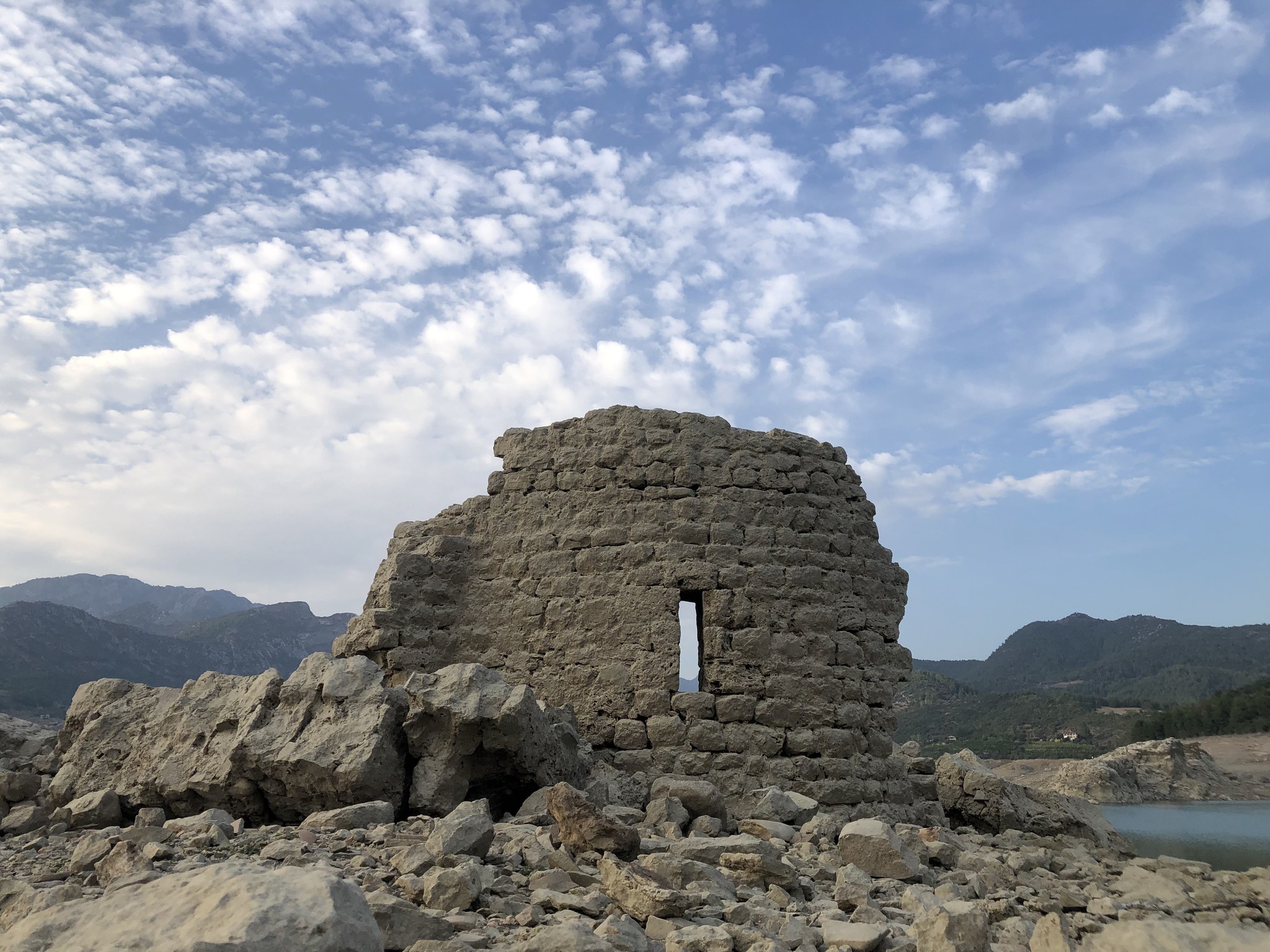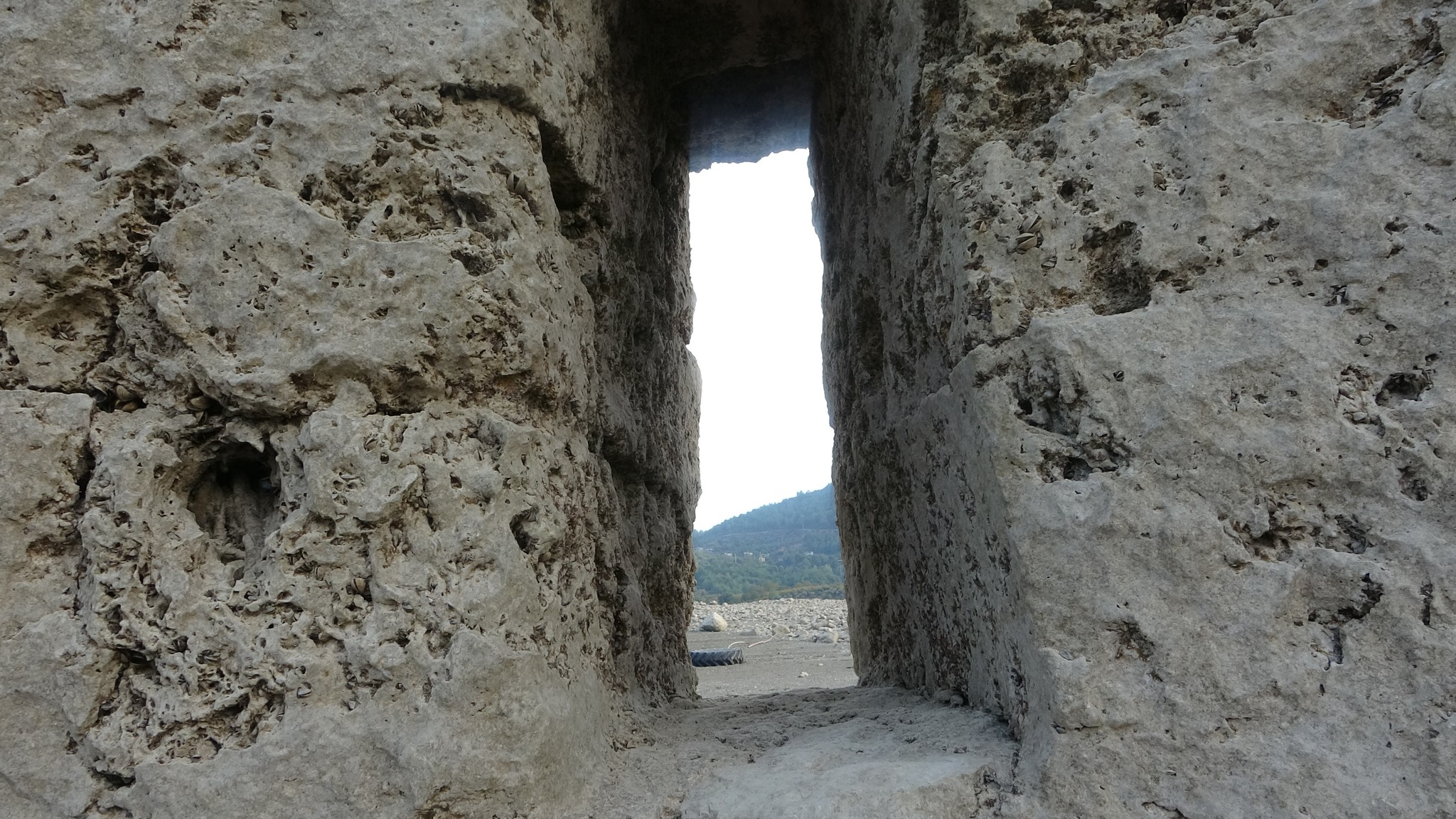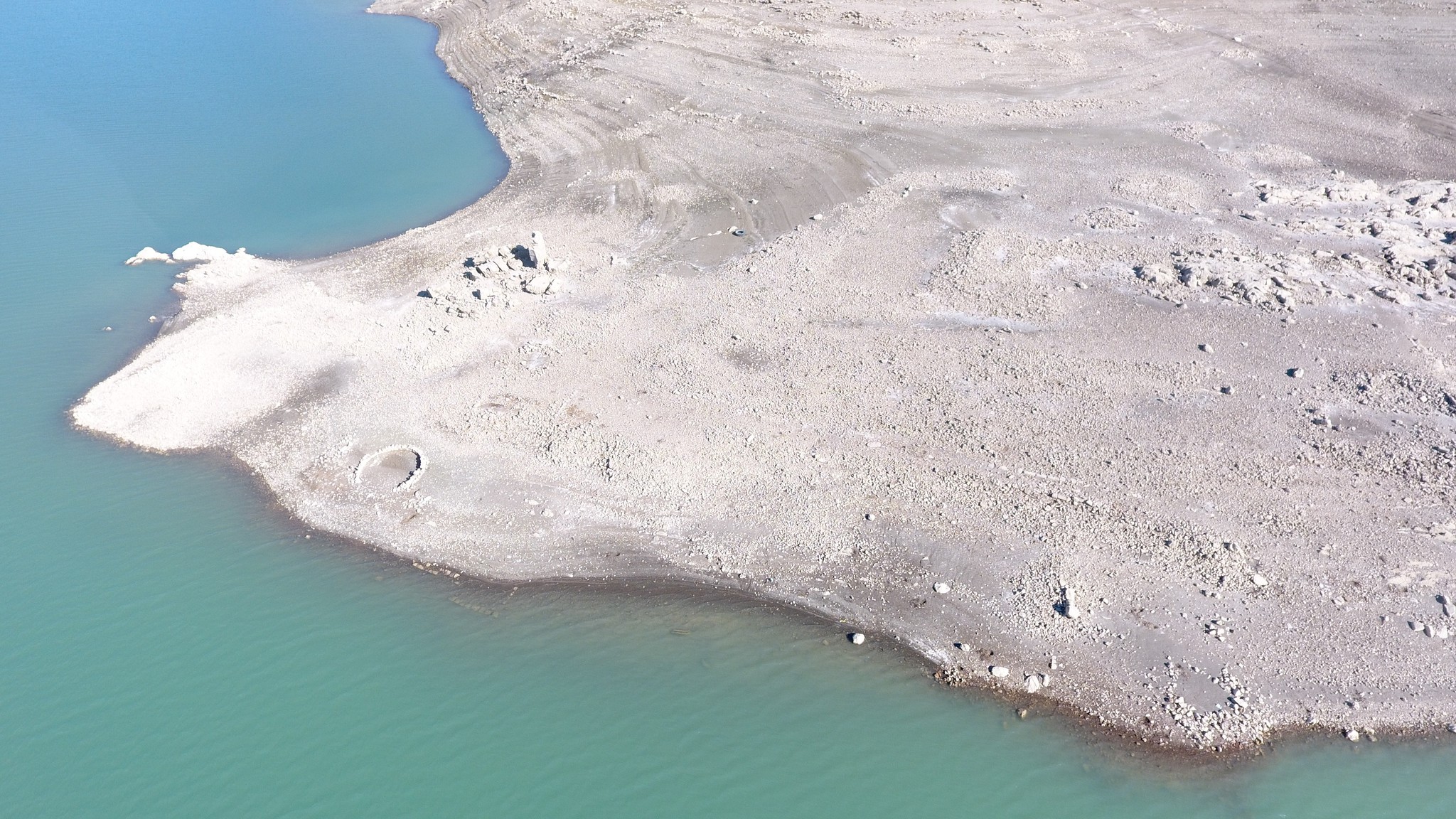 Adana Kozan'da baraj gölünün sularının kuraklık ile beraber iyice çekilmesinin ardından tarihi yapıları ortaya çıkardı.