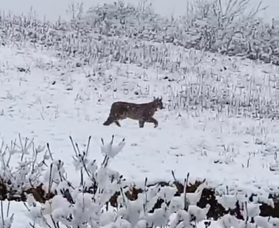 Trabzon'un Of ilçesi kırsalında etkili olan kar yağışı sonrasında yörede sayıları az sayıda bulunan vaşak görüntülendi. İşte o anlar...