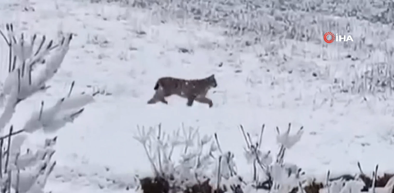Karla kaplı arazide dolaşan vaşak ve karaca bölgede araçlarıyla seyahat edenlerin ve mahalle sakinleri tarafından görüntülendi.