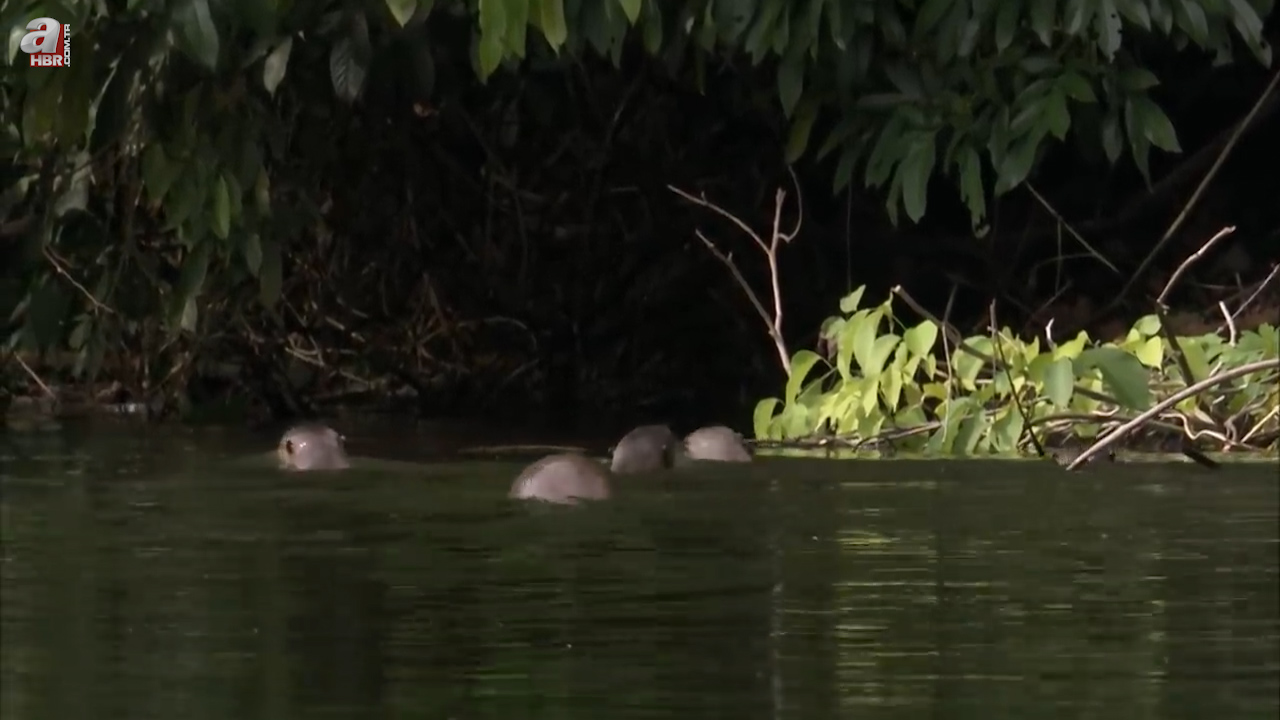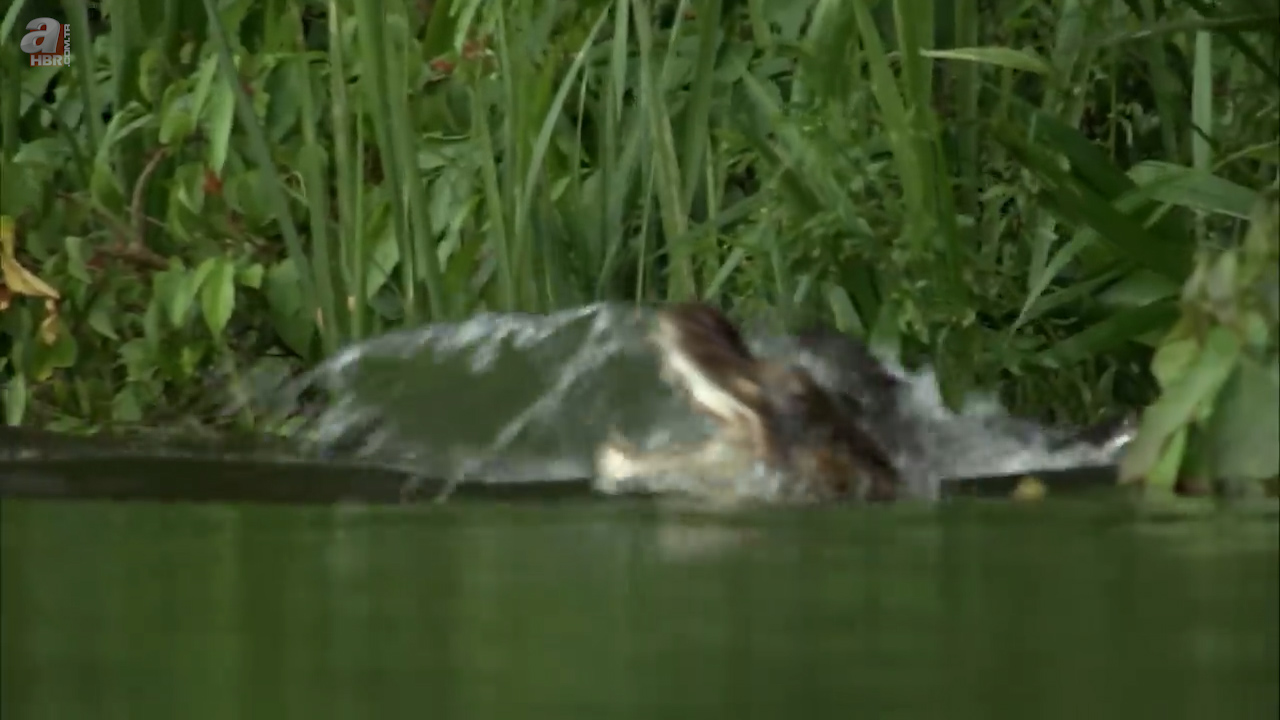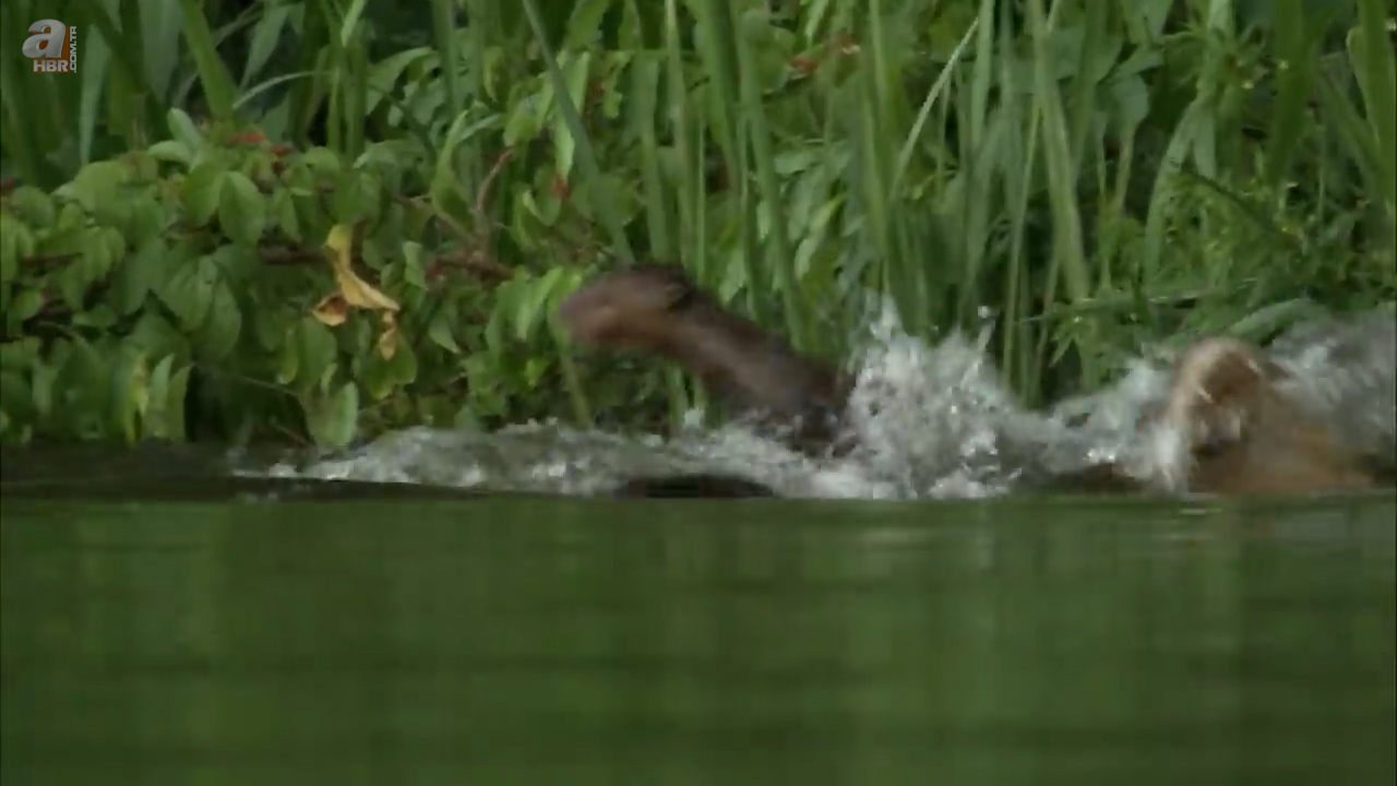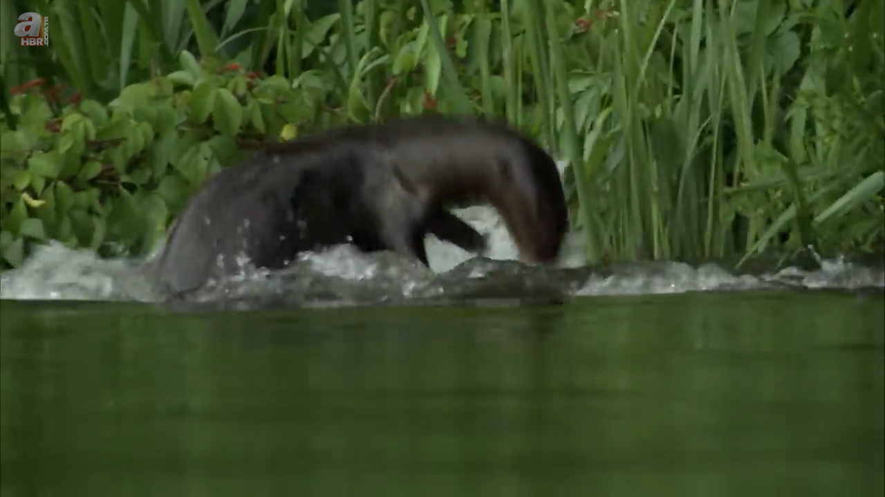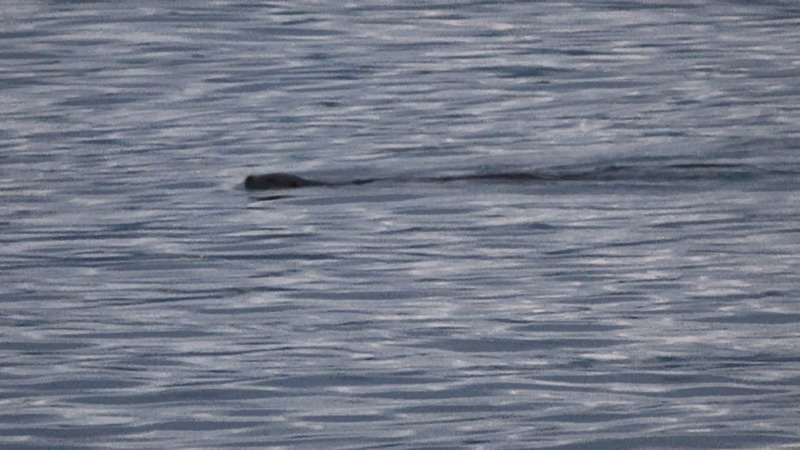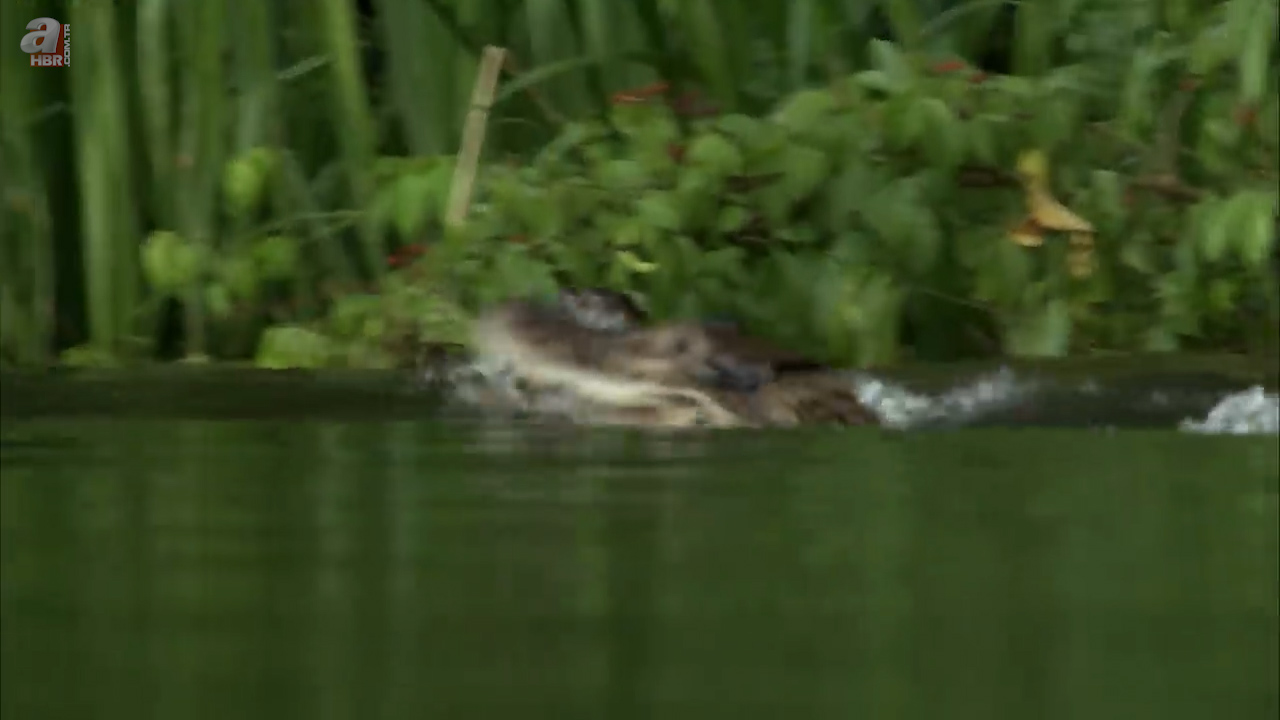 Sahildeki insanlara rağmen kenara kadar yaklaşan su samuru uzun kuyruğuyla ilk planda görenleri korkuttu.