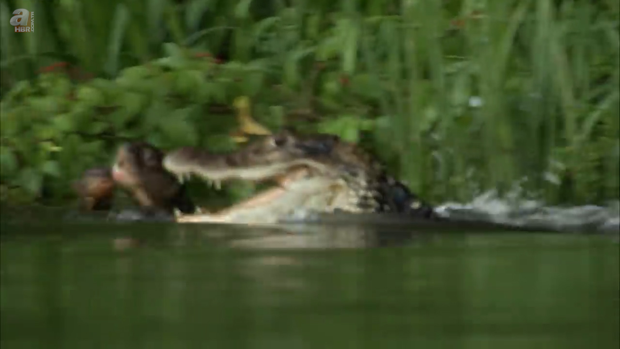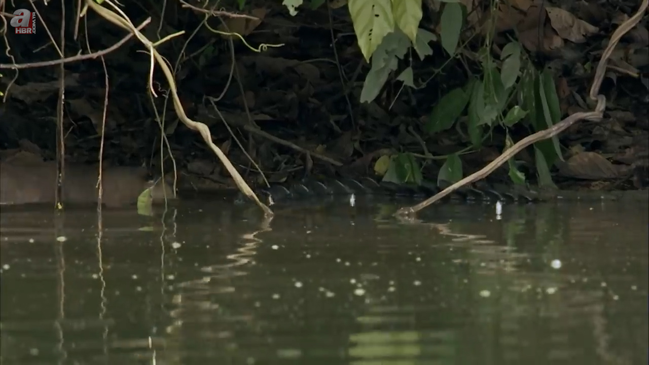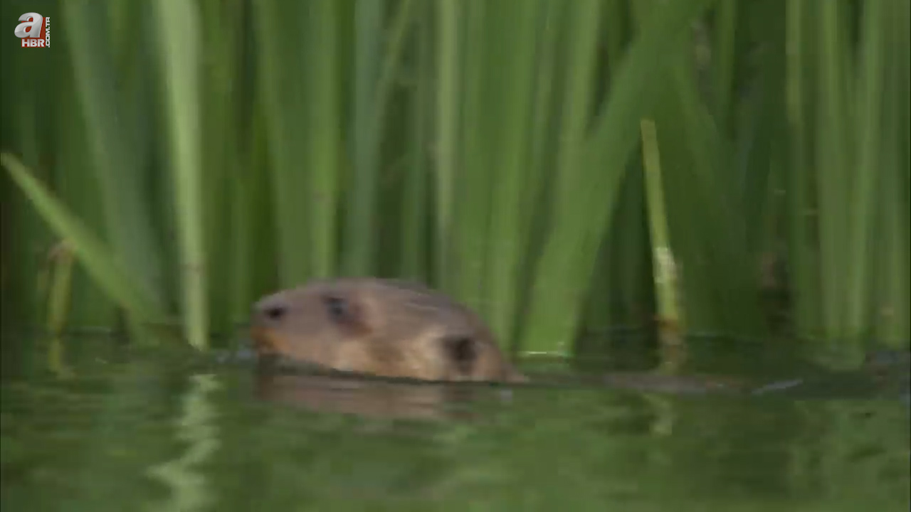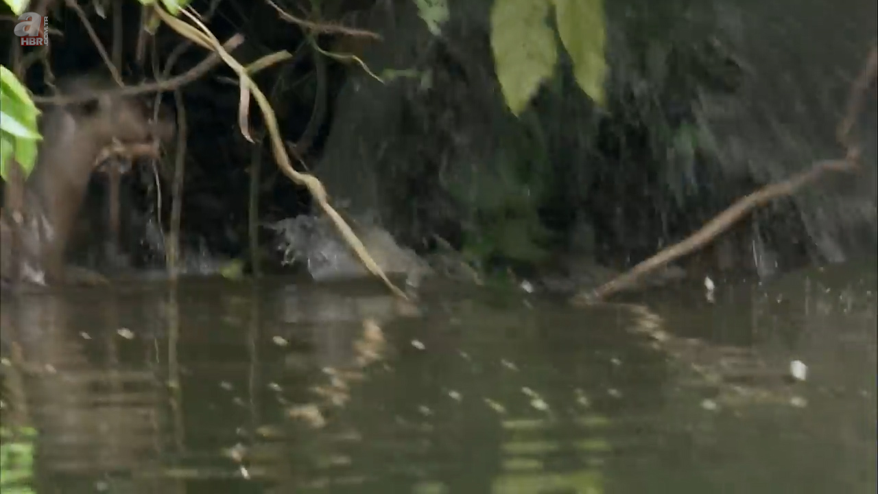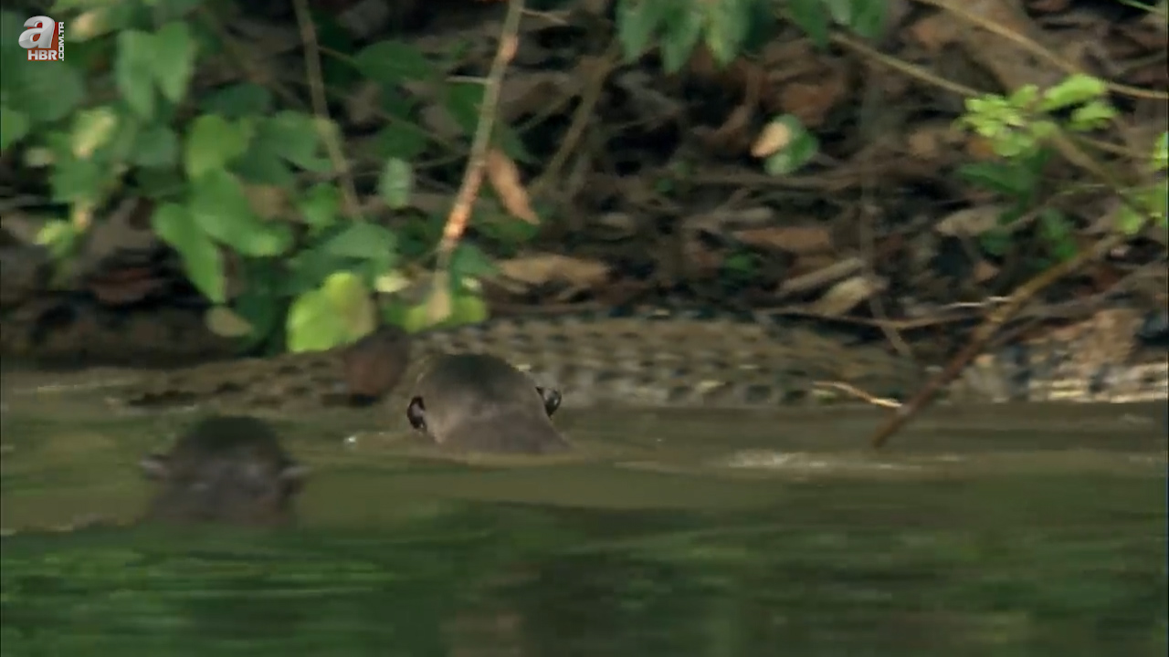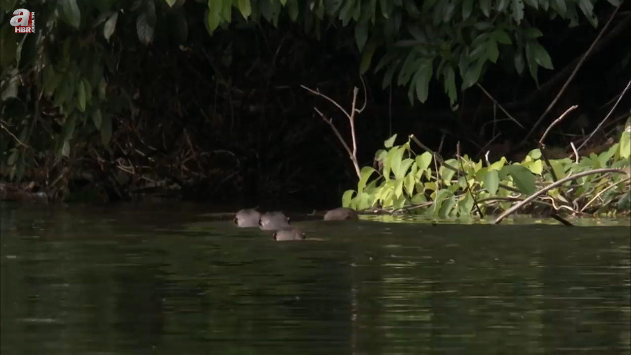 Sahildeki insanlara rağmen kenara kadar yaklaşan su samuru uzun kuyruğuyla ilk planda görenleri korkuttu.