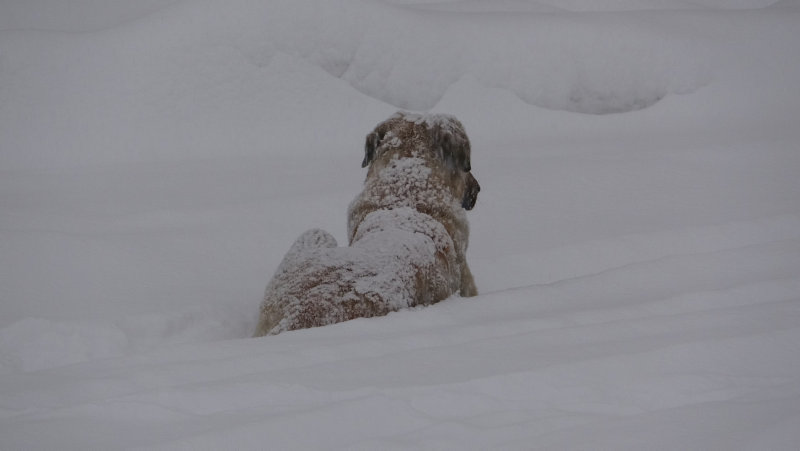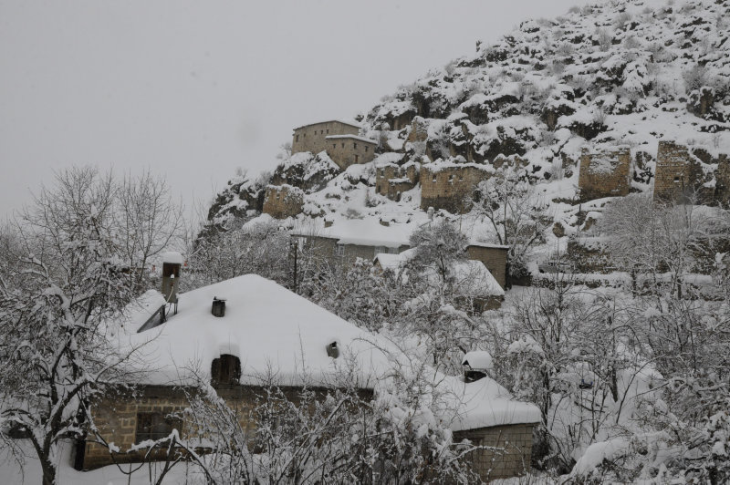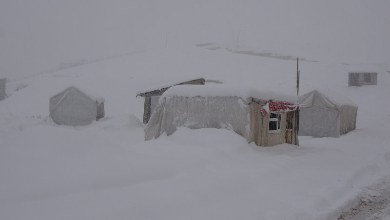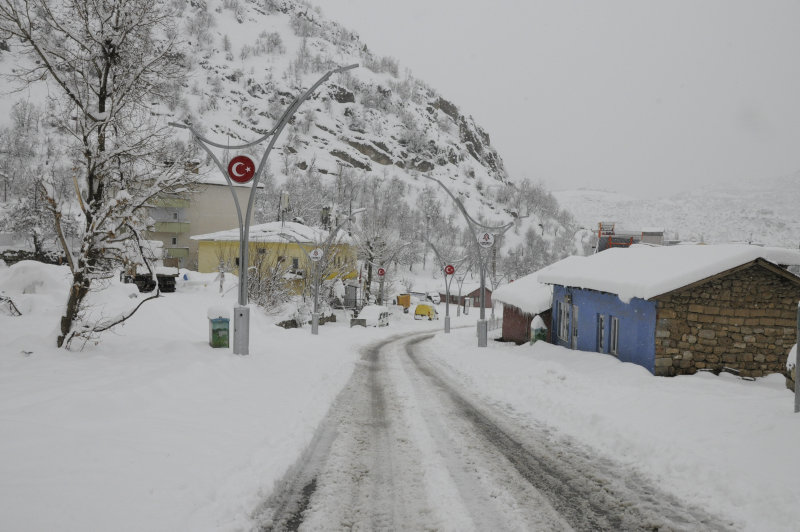 Hakkari'nin Derecik ilçesinde kar kalınlığı 1 metreye ulaşırken, tek katlı evler kar içinde adeta kayboldu.