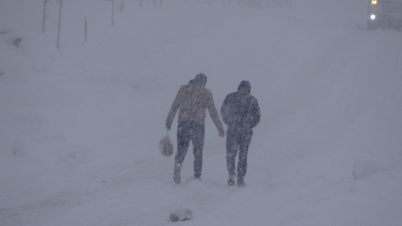 Vatandaşlar kürek yardımıyla evler arasında tünel açarken, halat yardımıyla güvenlik önlemi alarak evlerinin damlarında biriken karı da temizlemeye çalışıyorlar.