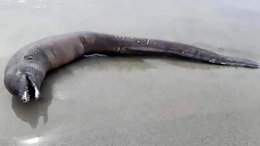 Sahile vuran bir balık, görenleri şaşkına çevirdi. Gözleri ve yüzgeçleri olmayan bu iri balık, yunus balığı ile fok balığı arasında bir türe benzetildi. Ancak balığın tam olarak hangi türe ait olduğu henüz belirlenemedi.