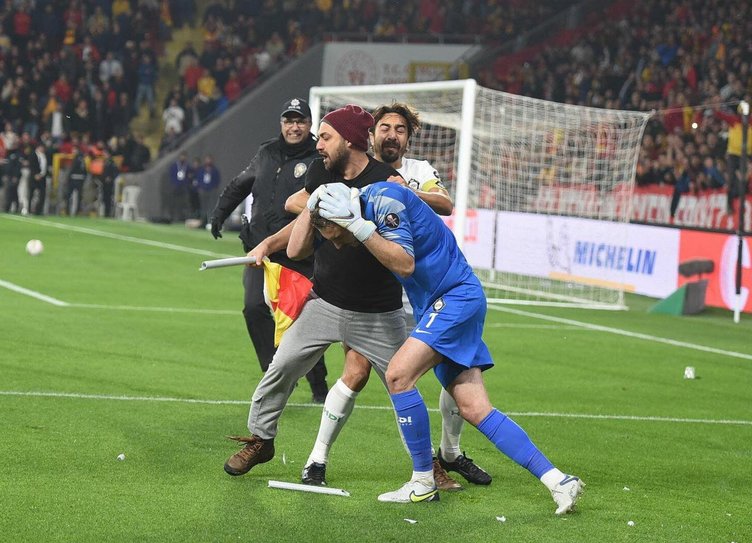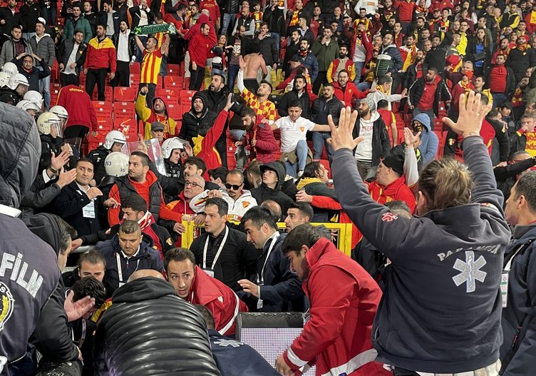 Furkan Ersanlı tarafından atılan işaret fişeği Göztepeli taraftar Mehmet Çakır'ın (45) yaralanmasına neden oldu. Sahaya inen holigan taraftar Mehmet Nihat Aydın korner bayrağı direğini alarak Altay kalecisi Ozan Evrim Özenç'e saldırdı.