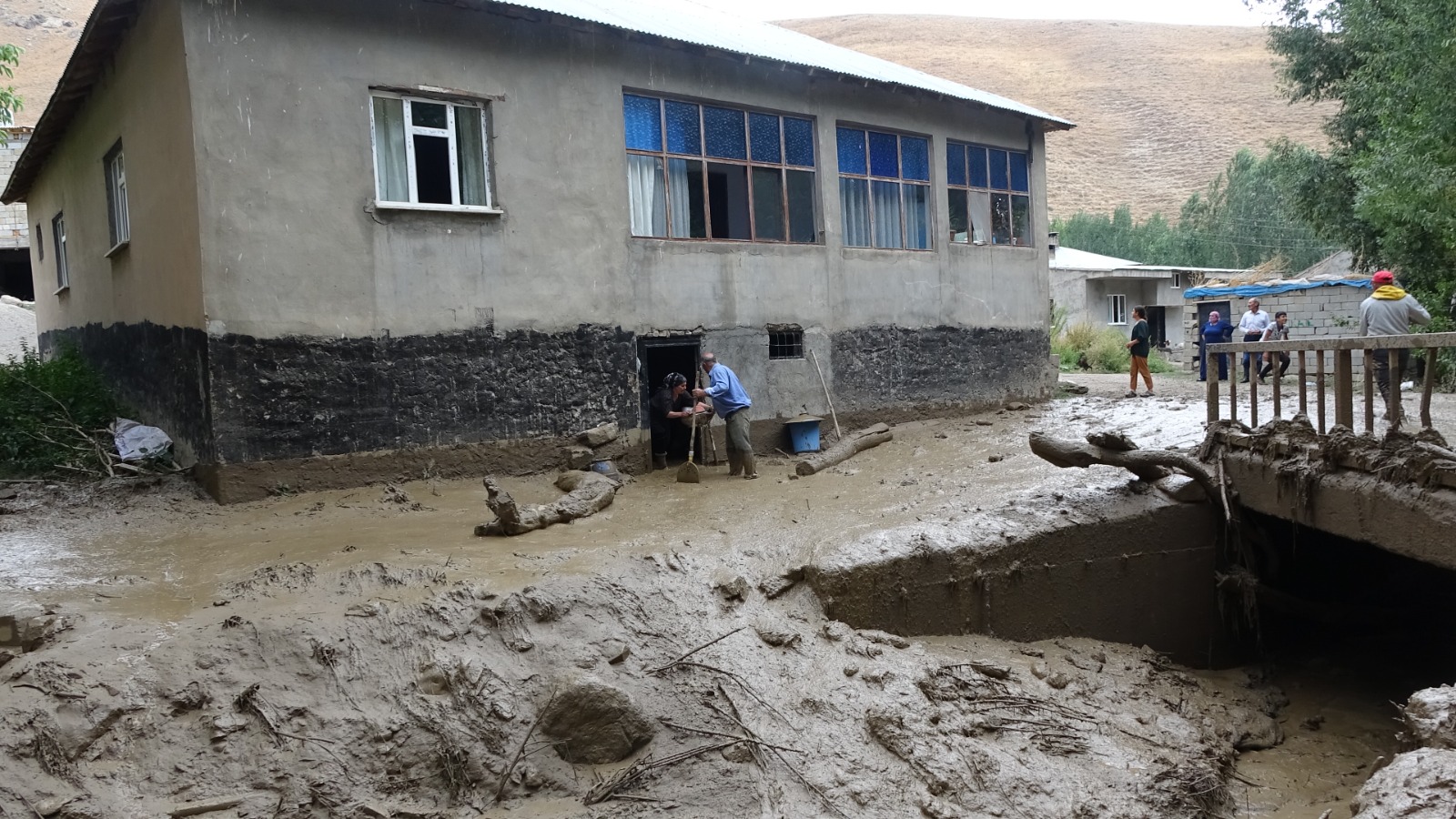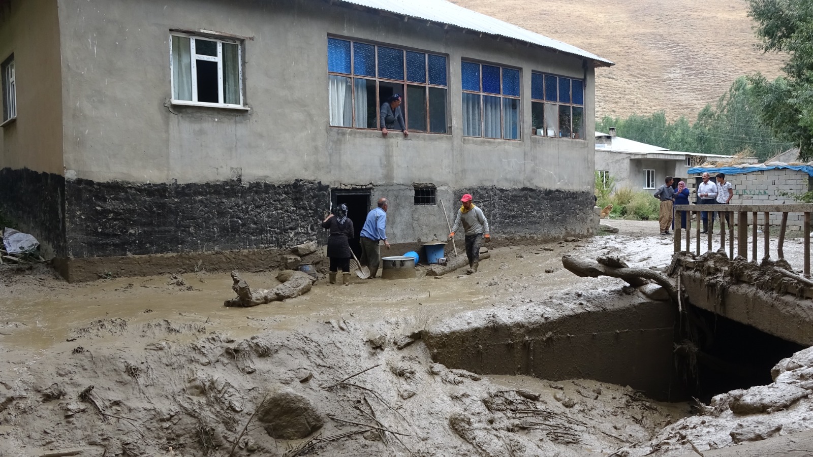 Hakkari'nin Yüksekova ilçesindeki Muşan Yaylası'ndaki sel suları, yağışın olmadığı köyde su baskınlarına neden oldu. Bazı evler su altında kalırken, dere yatağındaki 2 at sele kapılıp, öldü; 1000 ot balyası ise zarar gördü.