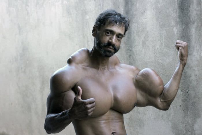 Brezilya'nın Sao Paulo kentinde yaşayan 48 yaşındaki inşaat işçisi Valdir Segato adlı adam, süper kahraman Hulk karakterine benzemek için beş sene önce pazılarına synthol zerk etmeye başladı.
