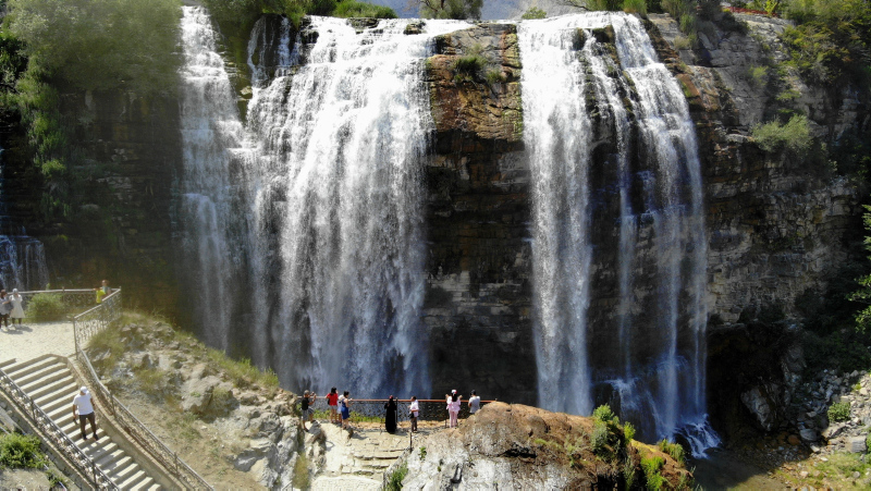 Erzurum'un Uzundere ilçesindeki, Avrupa ve Asya'nın en yüksek, dünyanın ise 3'üncü yüksek şelalesi olan Tortum Şelalesi, Kurban Bayramı'nda dolup taştı. Çevresi ışıklandırılan, geceleri ayrı güzelliğe bürünerek şelaleyi görmek için kente gelenler, bol bol hatıra fotoğrafı çektirdi. Şelale, dünya evine giren çiftler için de doğal stüdyo oldu.