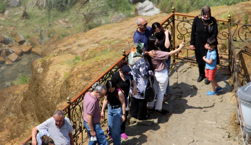 Güzelliğiyle dillere destan Tortum Şelalesinde bayram yoğunluğu! Halk akın etti