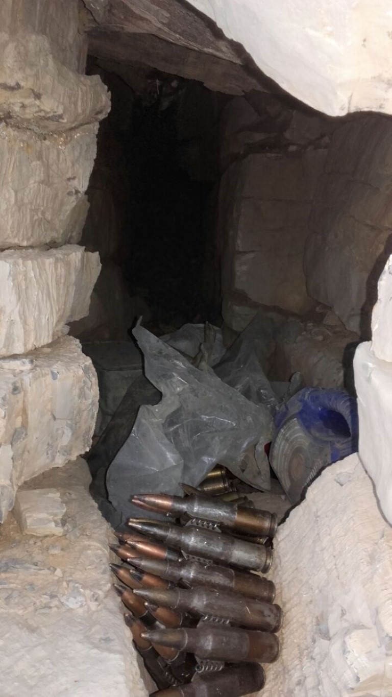 1. Komando Tugay Komutanlığı'nın bugün Çilekli Tepe'de yapılan arama tarama faaliyetleri esnasında tespit edilen 4 odalı mağarada PKK'ya ait 2 jeneratör, 2 çuval örgütsel doküman, 1 oyun konsolu, 4 kobra el telsizi, 1 doçka yükseltici, 20 dolu metal mühimmat sandığı (doçka, biksi), 1 büyük tüp, 100 metre kablo, 5 hilti ucu, 50 karton sigara, jeneratör malzemeleri, posterler (teröristlere ait), 20 litre benzin, muhtelif tapa, 16 el bombası, 70 havan barut hakkı, 1 varil kışlık elbise, 1 oda dolusu erzak (150 torba un, pirinç) ele geçirildi.