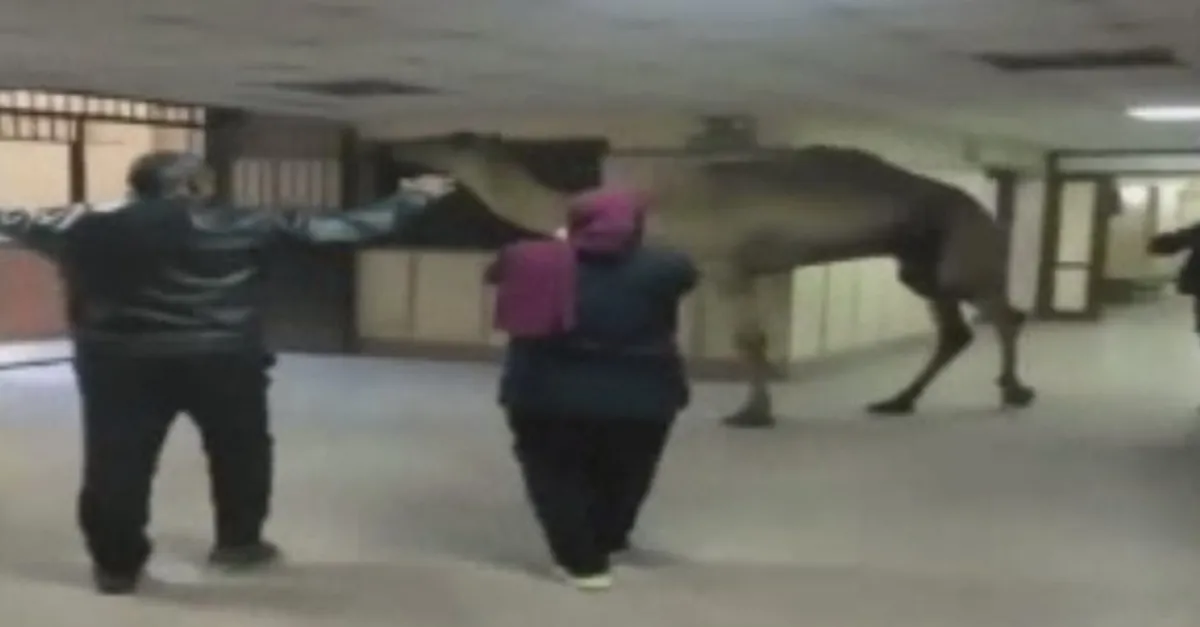 Mısır'ın Gize kentindeki Oseem Hastanesi'ne giren deve görenleri şaşkına çevirdi. Sosyal medyada yayınlanan görüntülerde, devenin hastanedeki hasta kabul birimine kadar ulaştığı, güvenlik görevlilerinin deveyi kontrol etmeye çalıştığı görüldü.