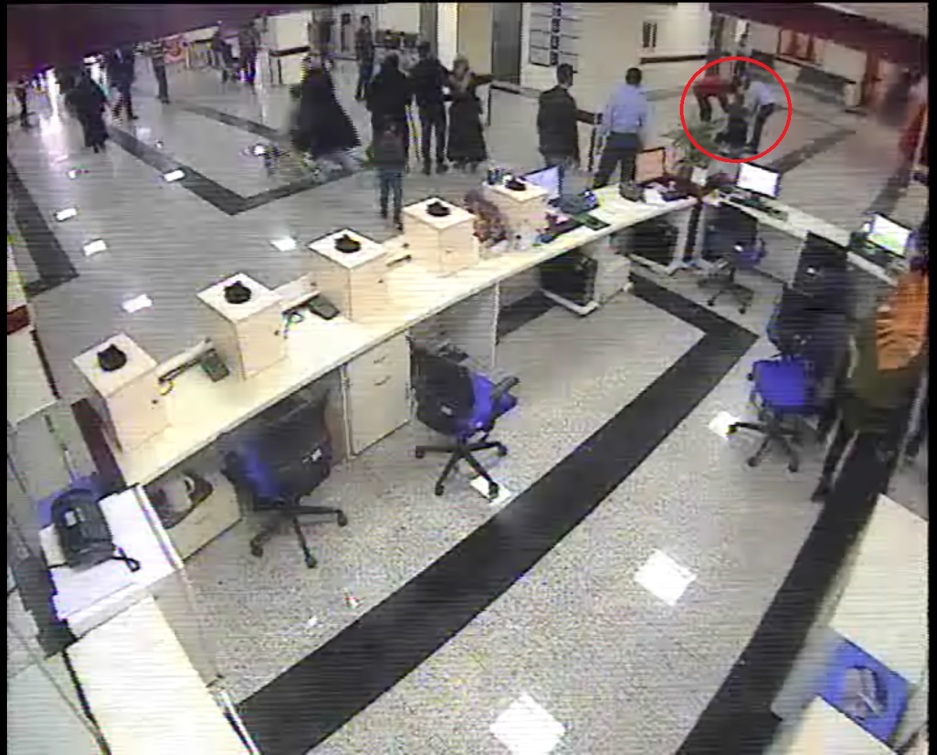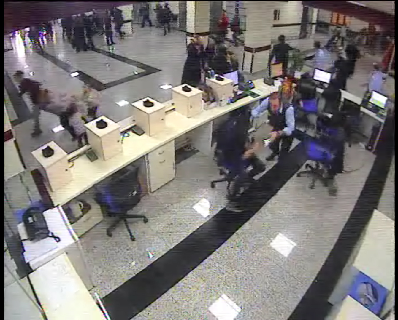 Muayene için hastaneye gelenlerin yaşadığı panik ve hastaneden çıkmak için koşturmaları, güvenlik kameralarına yansıdı.