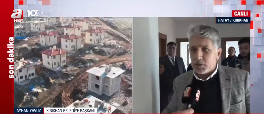 Deprem bölgesinde kalıcı konutlar yükselmeye devam ediyor. Hatay'ın Kırıkhan ilçesi Saylak Mahallesi'ndeki son durumu A Haber muhabiri Halil İbrahim Uğur aktardı.
