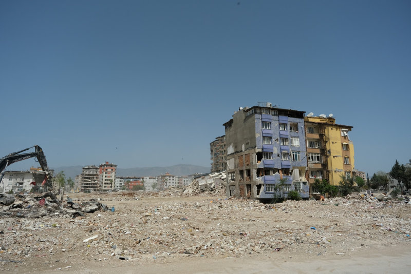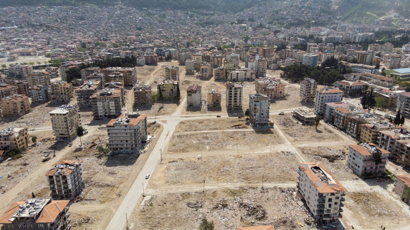Kahramanmaraş merkezli depremlerden en fazla etkilenen Hatay'da enkaz kaldırma çalışmaları ve ağır hasarlı binaların yıkımları devam ederken, binalardan boşalan alanlar adeta meydana dönüştü.