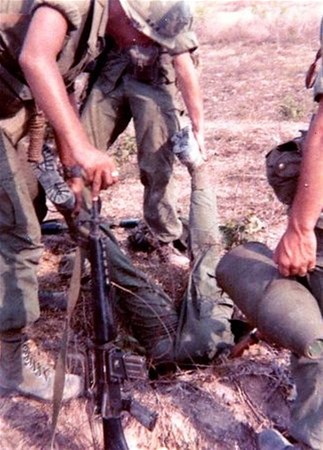 Vietnem savaşında askerler örümcek deliğini kontrol ediyorlar.
