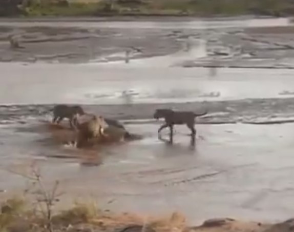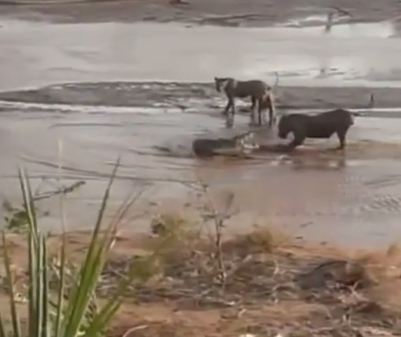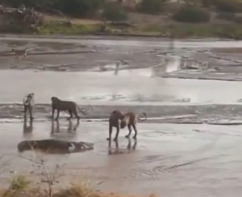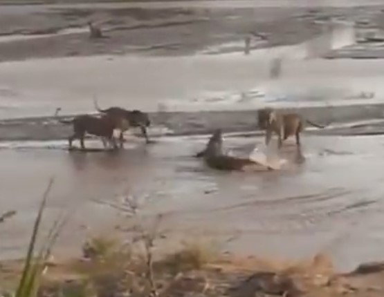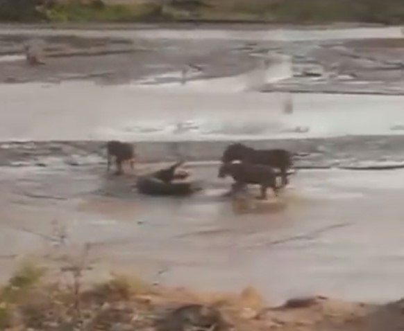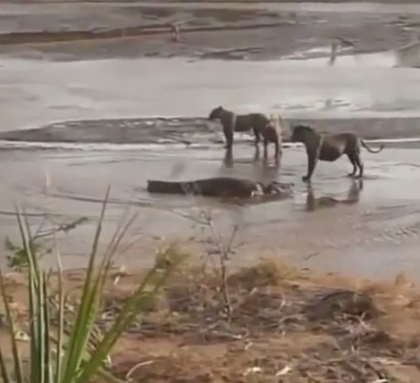 Timsahın alanına giren 3 aslan adeta boyunun ölçüsünü aldı. Sosyal medyaya yansıyan görüntüler izlenme rekorları kırdı.