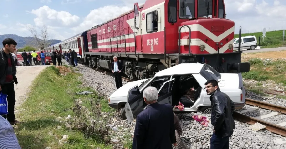 Uşak'ın Eşme ilçesinde yolcu treninin hemzemin geçitte otomobile çarpması sonucu 2 kişi yaralandı.