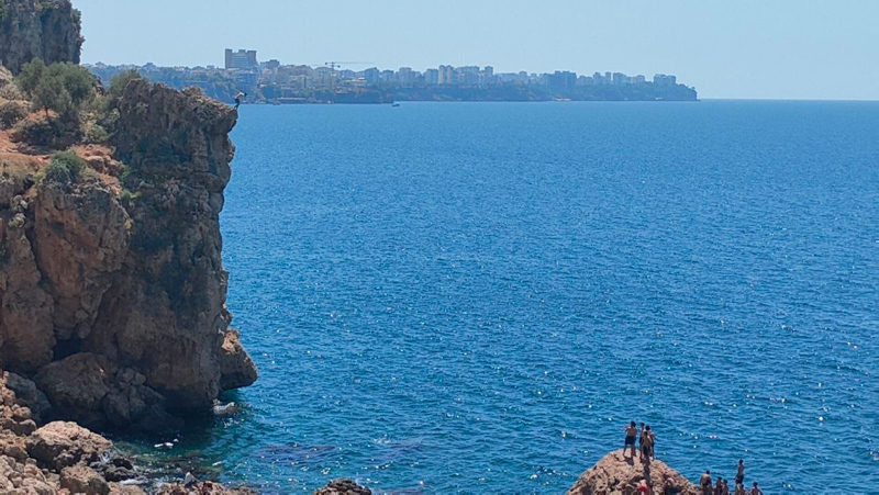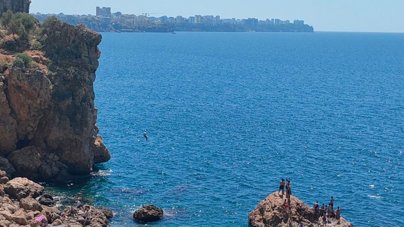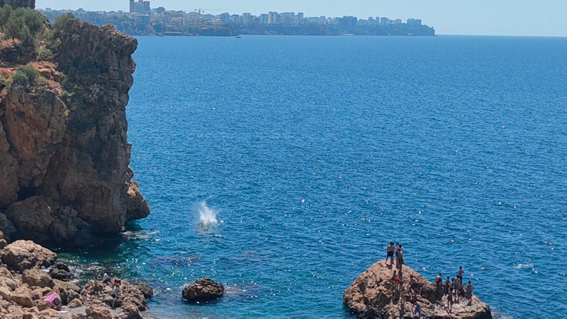 Kurban Bayramı'nın 4. gününde turizm kenti Antalya'da sahillerde yoğunluk oluşmaya devam etti. Dünyaca ünlü Konyaaltı Sahili'nin varyant bölgesindeki yaklaşık 40 metre yüksekliğindeki falezler ise macera arayan gençlerin adresi oldu. Adrenalin tutkunu küçük çocuklar 5 metre yüksekliğinde kaya üzerinden atlayış yaptı.