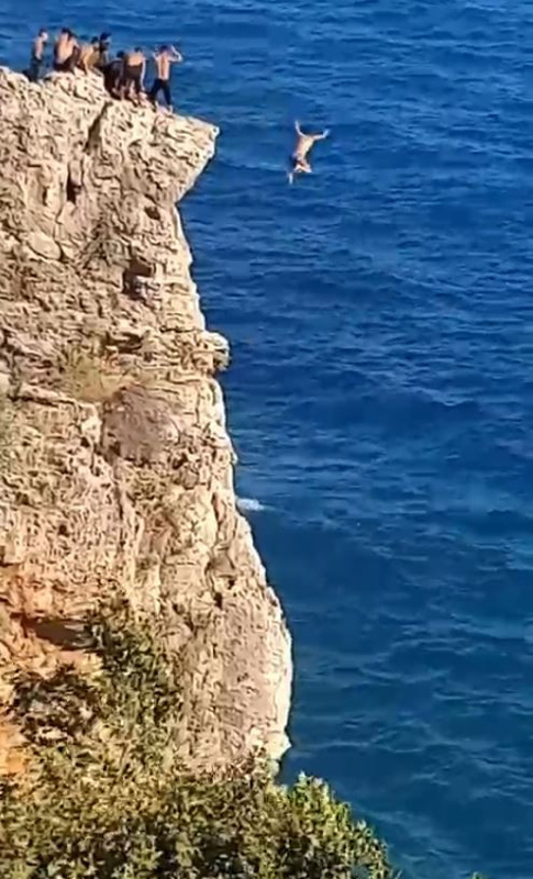 İki genç ise denize dik inen falezlerin en uç noktasından tehlikeye aldırmadan kendilerini denize bıraktı. Ayaklarının üzerine atlayan iki genç, bir süre su altında kaldıktan sonra yüzeye çıktı. Başarılı atlayışın ardından iki gence aşağıdaki çocuklar alkışlarla destek oldu. Kiminin aşağı bakmaya bile korktuğu yerden gençler, tüm tehlikeye rağmen atladı.
