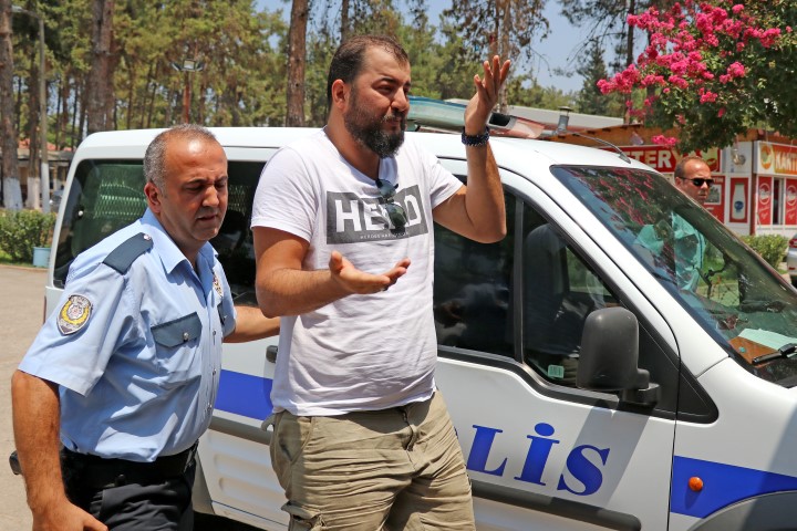 Olay yerine çağrılan polis ekipleri, üzerinde Fetullahçı Terör Örgütü (FETÖ) sanığının da giydiği 'Hero' yazılı tişört bulunan Berker'i gözaltına alıp 100. Yıl Polis Merkezi'ne götürdü.