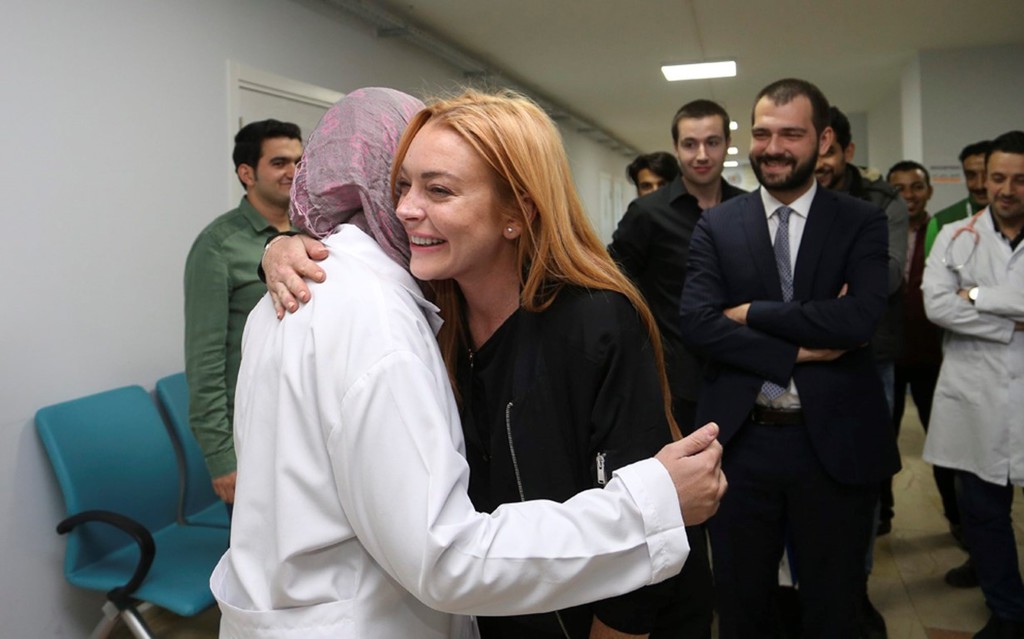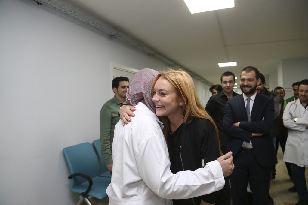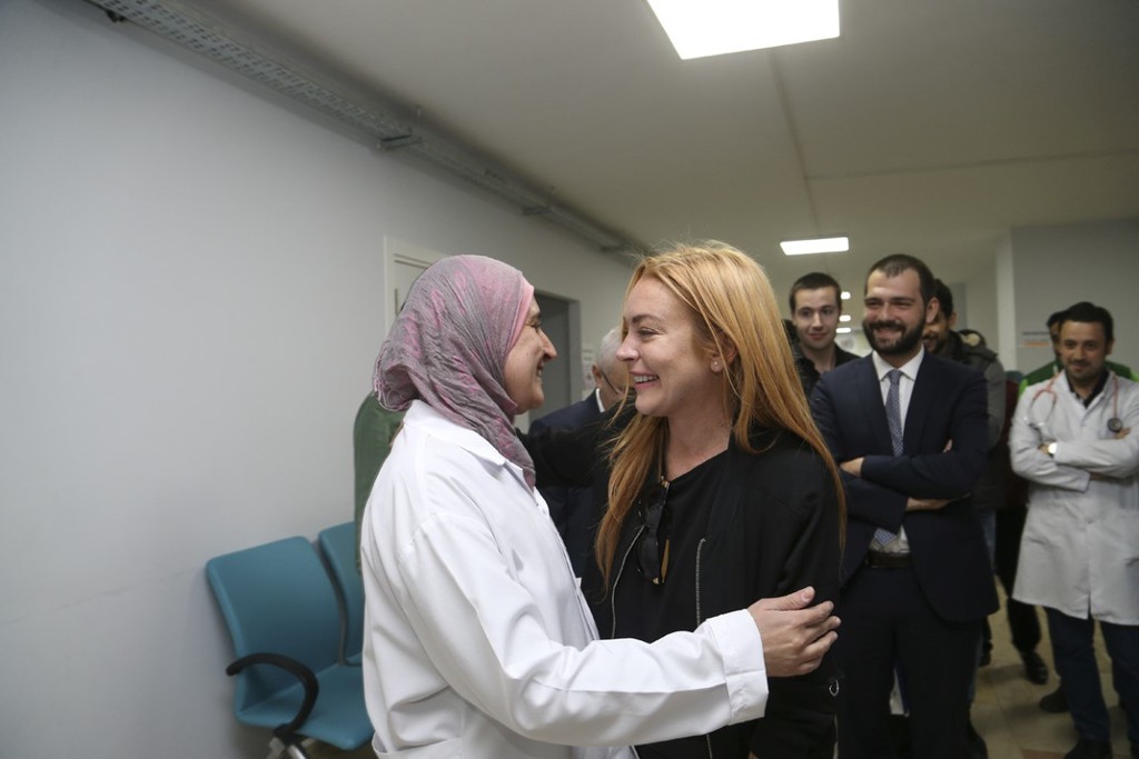 Amerikalı ünlü oyuncu Lindsay Lohan, Türkiye'ye gelerek Gençlik ve Spor Bakan Yardımcısı Abdurrahim Boynukalın ile Sultanbeyli'de Suriyeliler için açılan hastaneye ziyaret etti.