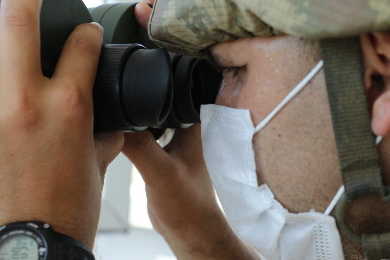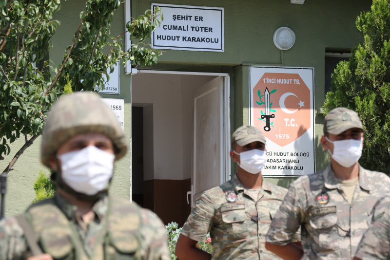Askerlerin bayramını kutlamak için Şehit Er Cumali Tüter Hudut Karakolu'na gelen 1'inci Hudut Tabur Komutanı Piyade Binbaşı Mehmet Özer, 3'üncü Hudut Bölük Komutanı Piyade Yüzbaşı Engin Şenatlı tarafından hudut tekmiliyle karşılandı.