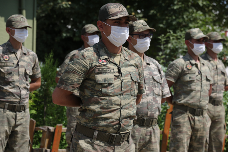 Karakol bahçesinde düzenlenen bayramlaşma töreninde Binbaşı Özer, kahraman Mehmetçik'in ve ailelerinin bayramını tebrik etti. Bayramlaşma programı, korona virüs pandemisi nedeniyle maske ve sosyal mesafe kuralları çerçevesinde, Tabur Komutanı Özer'in konuşmasının ardından sona erdi.