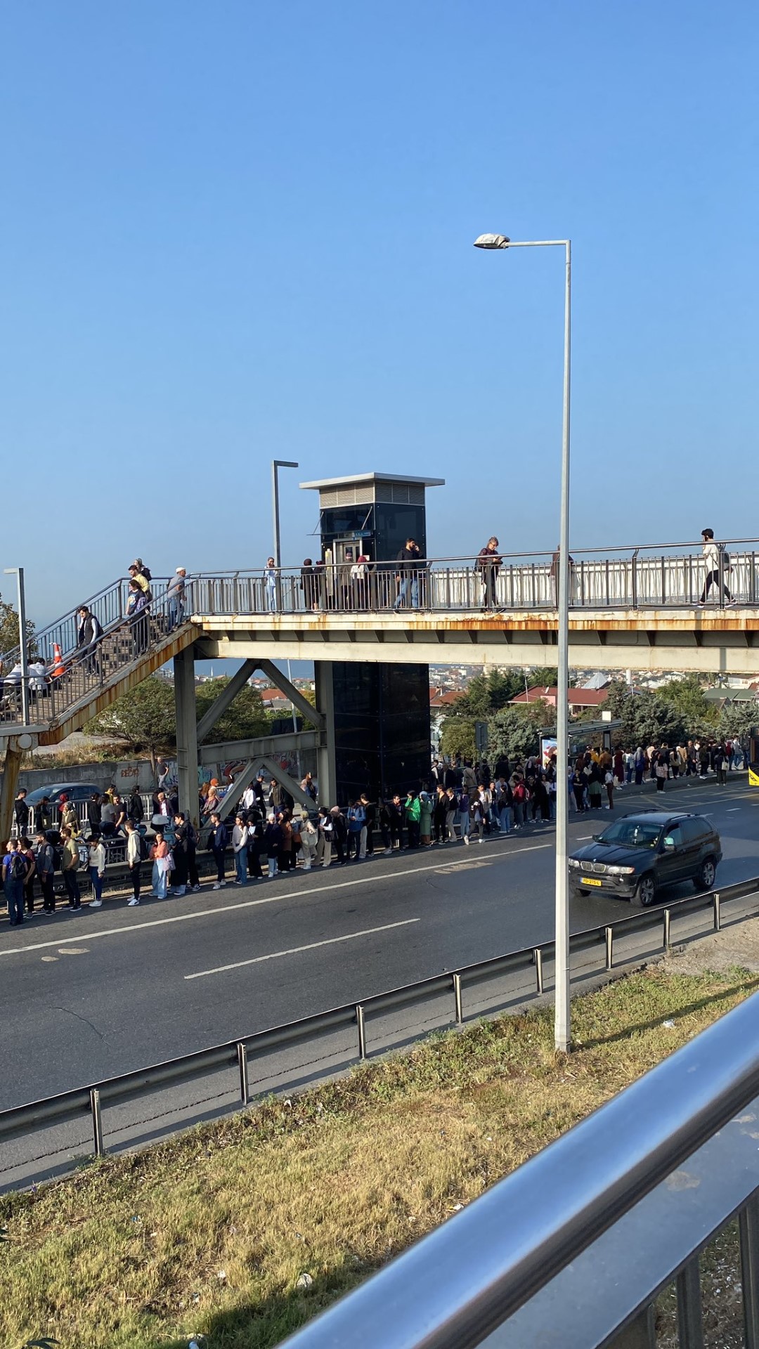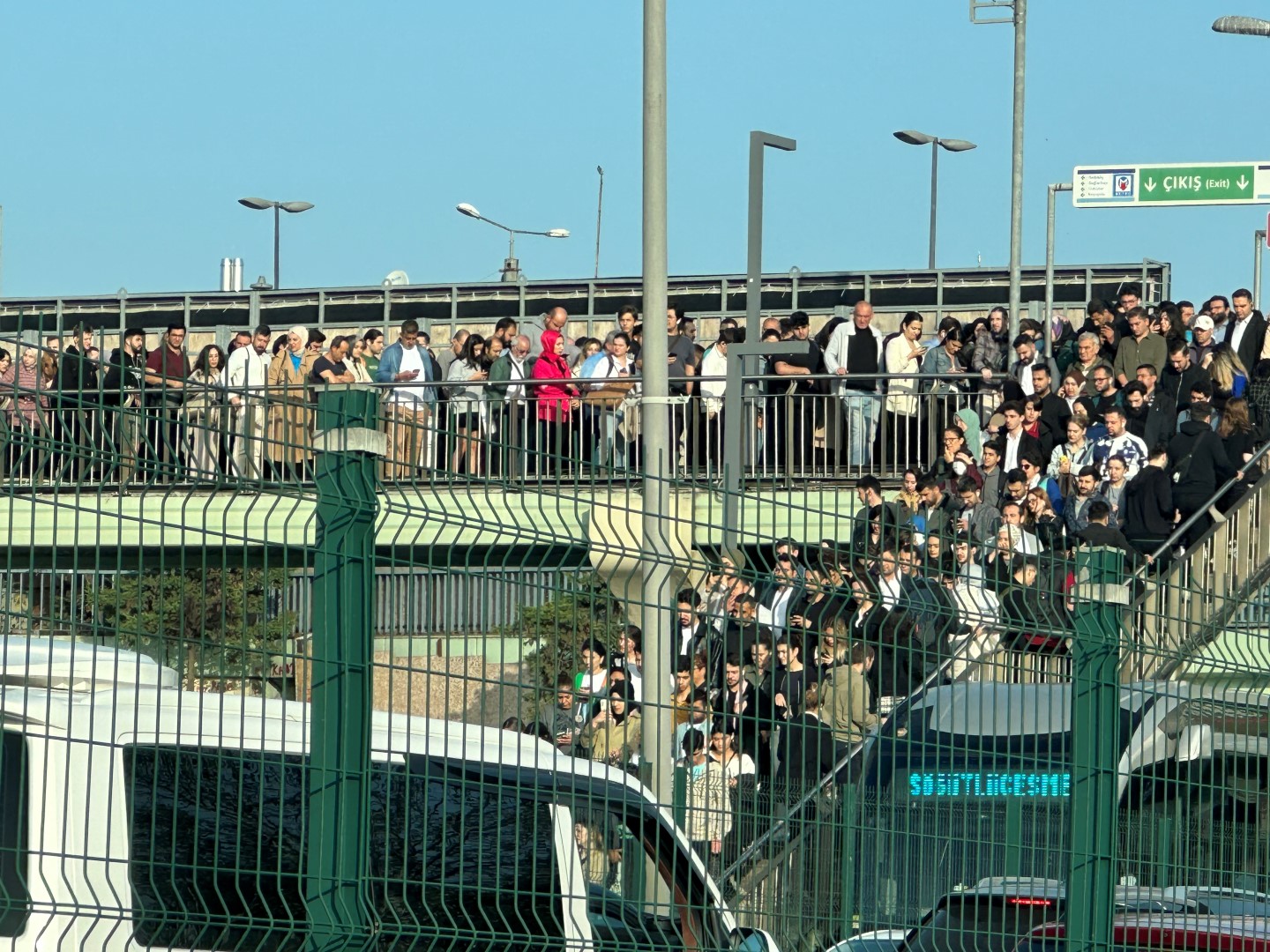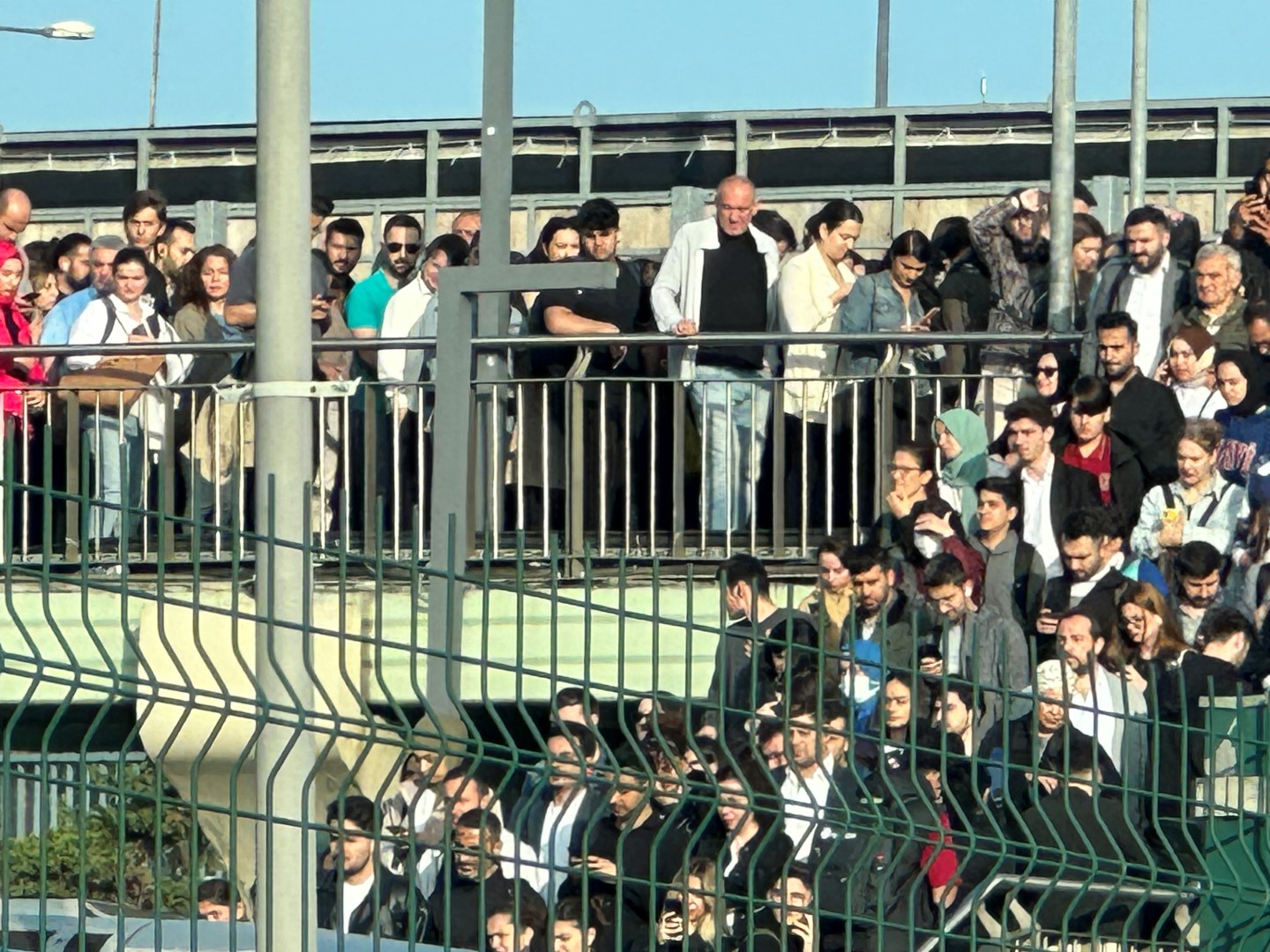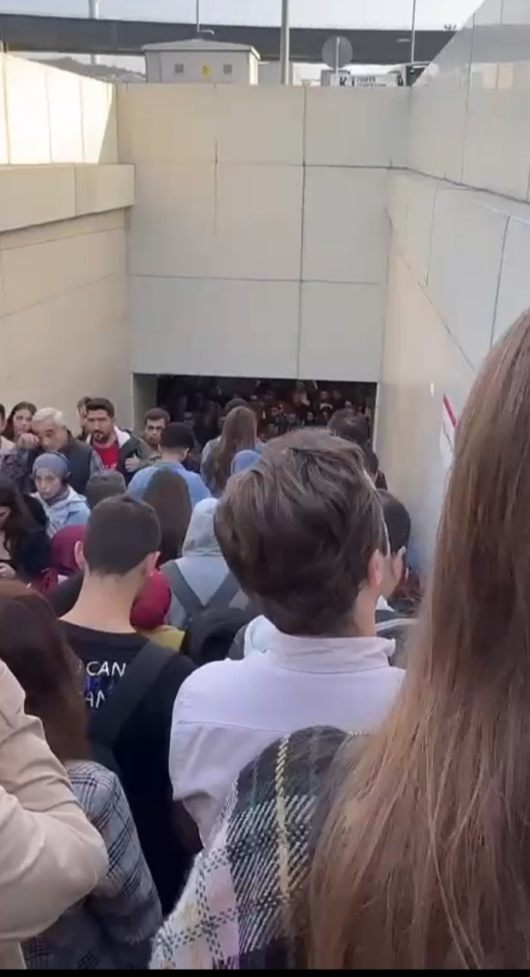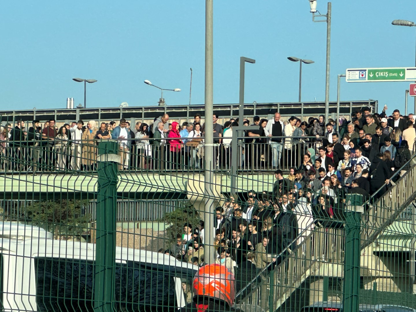 Bir vatandaşın kamerasına yansıyan görüntülerde, Altunizade metrobüs hattına giden üst geçitteki insan yoğunluğu dikkat çekiyor.