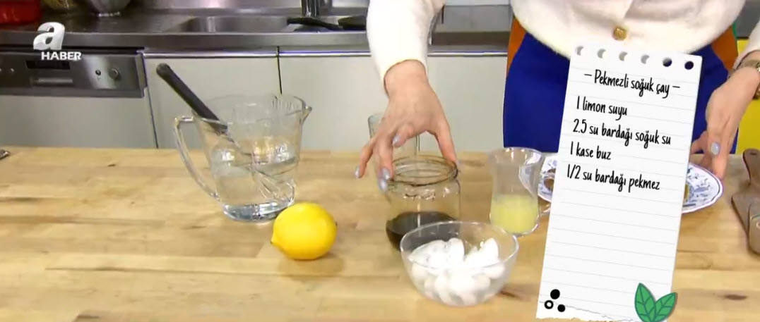 Ramazan ayında iftar sonrası hafif tatlı ve içecek tercihi önemli. Şef Sahrap Soysal, Ramazan ayında evde kolayca hazırlanacak tarifler verdi. İşte leblebi helvası ve su, limon, pekmez, buz ile hazırlanan ve soğuk çay diyebileceğimiz bir içecek tarifi...