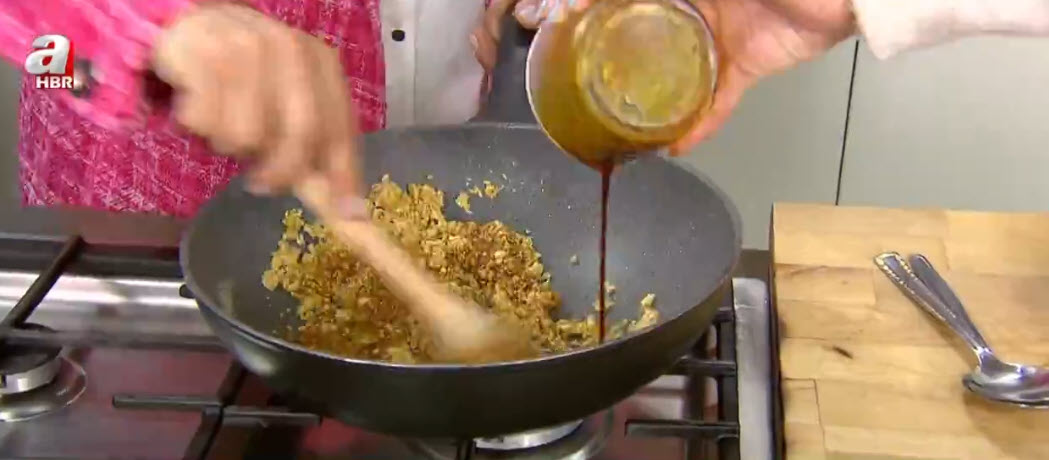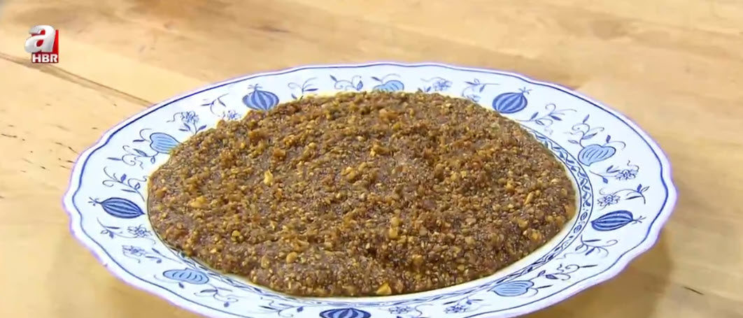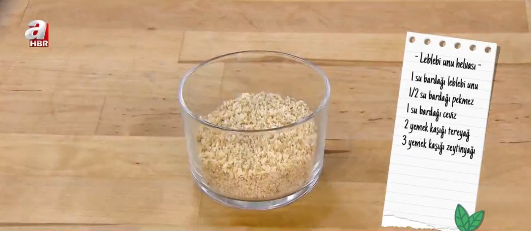 Malzemeler: 1 su bardağı leblebi unu, ½ su bardağı pekmez, 1 su bardağı ceviz, 2 yemek kaşığı tereyağ, 3 yemek kaşığı zeytinyağı.