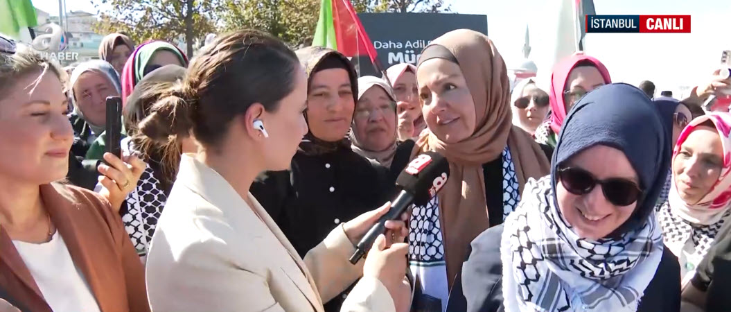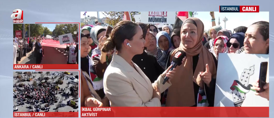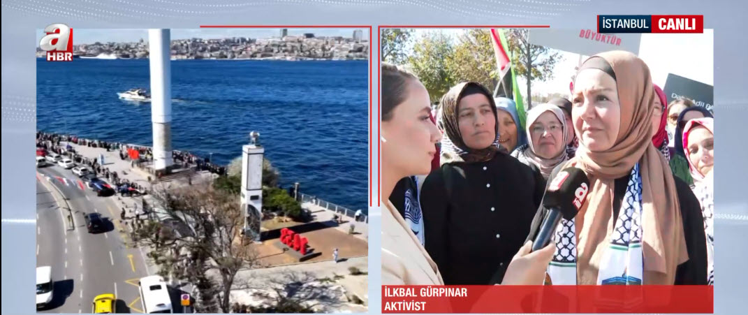 1 milyon başvuru olmuş. 1 milyon başvurunun Türkiye'den olmuş olması müthiş bir şey. Yani bizim için Mescid-i Aksa, tabii burada görünürde Gazze'ymiş gibi görünüyor ama biz Mescid-i Aksa için gittik. Çünkü Mescid-i Aksa bizim ilk kıblemiz. Gazze ve El-Halil kentindeki kavi Müslümanlarla orası hala ayakta duruyordu. O yüzden Gazze'ye gitmek zorundaydık. Yani senelerdir abluka altındalar. Bizi silahlarla tekneye, teknenin güvertesine çıkardılar. Çok küçük bir tekneydi bizim. Güneşin altında işte saatlerce bizi yaktılar. Ben geldiğimden beri neler sürdüm suratıma hani o kayış gibi hal çıksın diyerek. Ondan sonra bizi bir alana getirdiler. Alanda karaya çıkarttılar, tekrar başka bir tekneye bindirdiler, tekrar karaya çıkardılar, başka bir Alma teknesinde beklettiler. Ardından da yere yatırdılar.