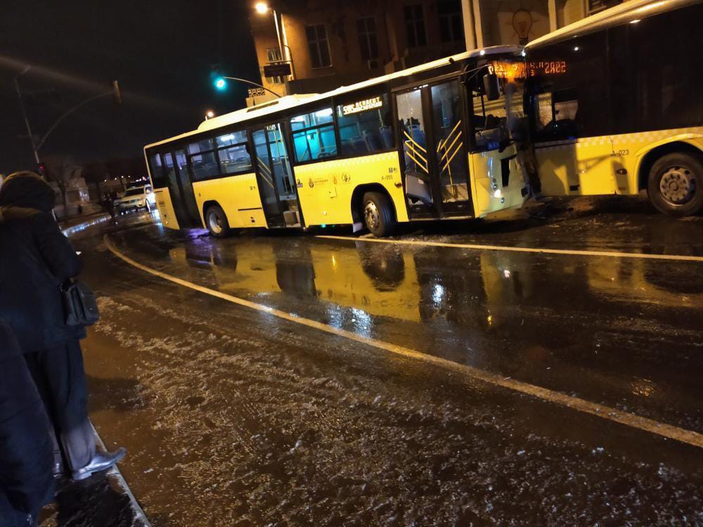 Sarıyer istikametine doğru seyir halindeki İETT'ye bağlı otobüs, kar yağışı ve buzlanma nedeniyle kontrolden çıktı.