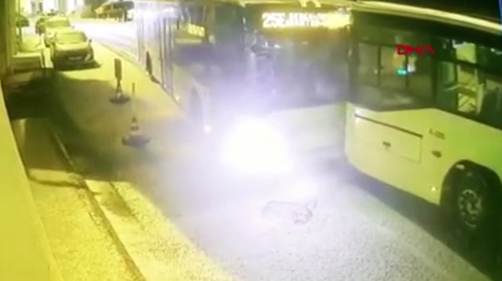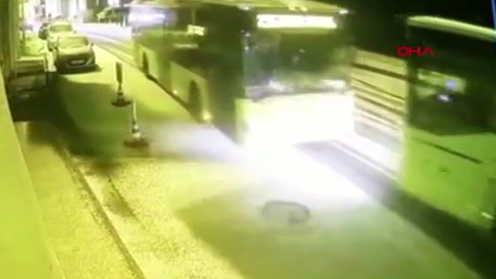 Otobüslerin çarpışma anları güvenlik kamerasına saniye saniye yansıdı.