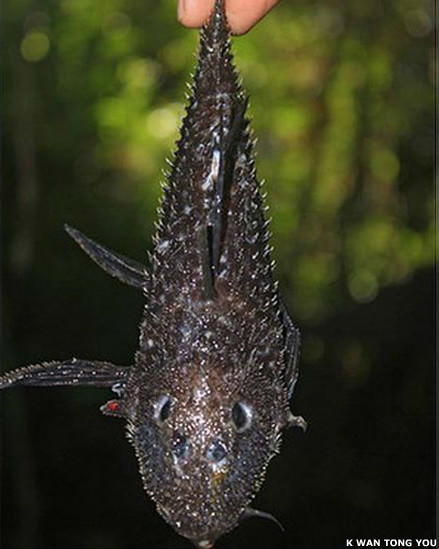 Zırhlı yayın balığı. Bu balık dev piranhalarla aynı ortamı paylaşıyor. Balığın belkemiği piranhalardan korunmasını sağlıyor.