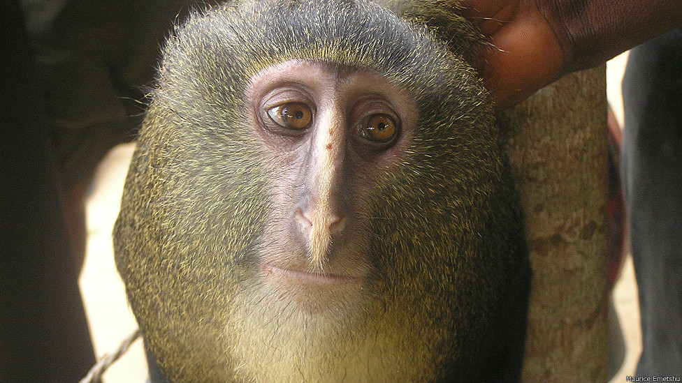Lesula maymunu Demokratik Kongo Cumhuriyeti'nde görüldü.