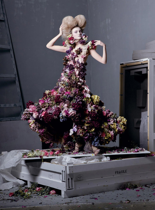 Coco Rocha, Karen Elson, Caroline Trentini ve Raquel Zimmerman gibi modellerin giydiği elbiseler, kostümden çok 'sanat eseri'ni andırıyor.