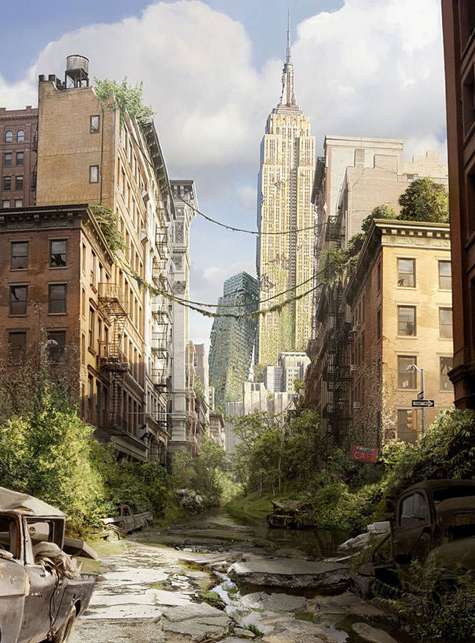(1000 yıl sonra) İnsana dair hemen hemen tüm uygarlık (!) izleri silinmiş olacak. Her yer bitki, her yer doğa. Betondan, demirden, çelikten eser kalmayacak.