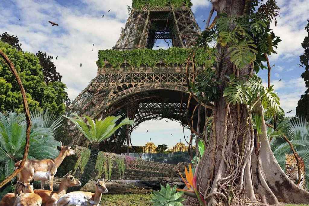 (200 yıl sonra) Çok dayanıklı olsa bile Eyfel Kulesi de yıkılmaz değildir. Normal şartlarda korozyondan korumak için her 6-7 yılda bir boyanan bu yapı, ilgilenen olmayınca korozyona yenik düşüp yıkılacak.