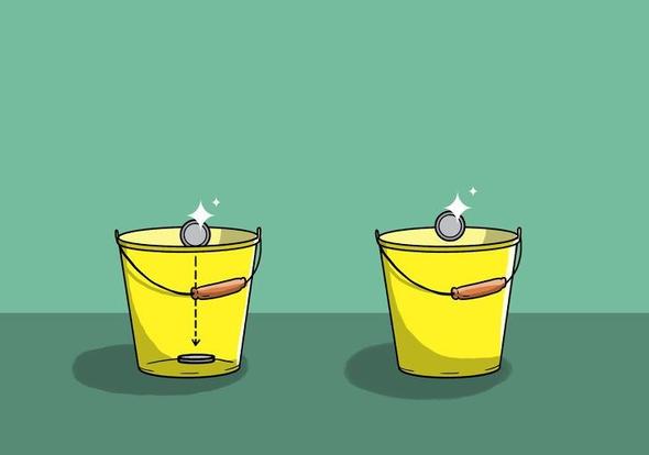 Biri 25 santigrat derece diğeri 25 fahrenheit derece iki kova su var. Bu iki kovaya aynı yükseklikten aynı anda 2 madeni para atılırsa en önce hangi kovaya düşen dibe ulaşır?