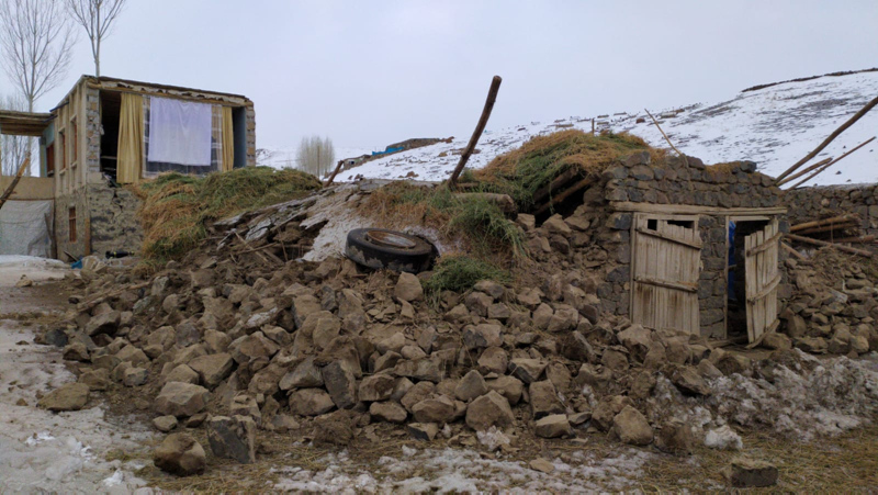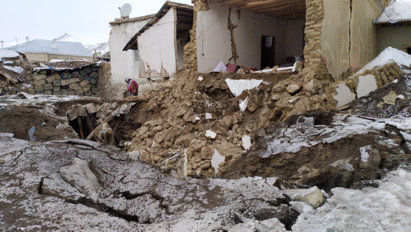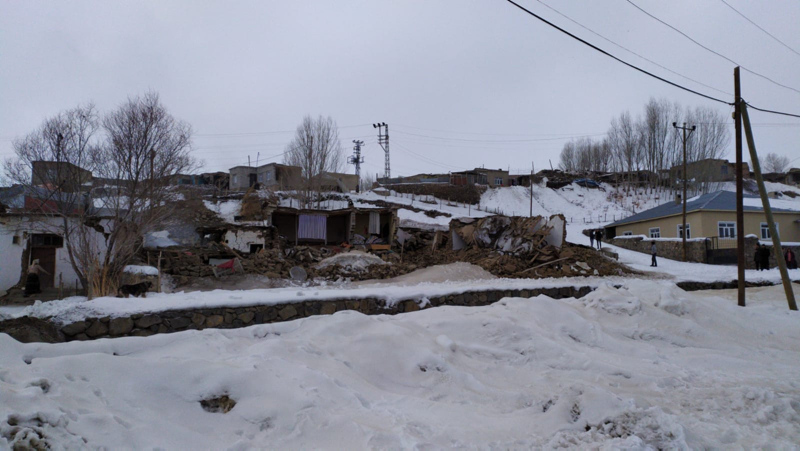 Başkale ilçesi Gelenler mahallesinde hissedilen depremde, kerpiçten yapılan bazı binaların yıkıldığı görüldü.