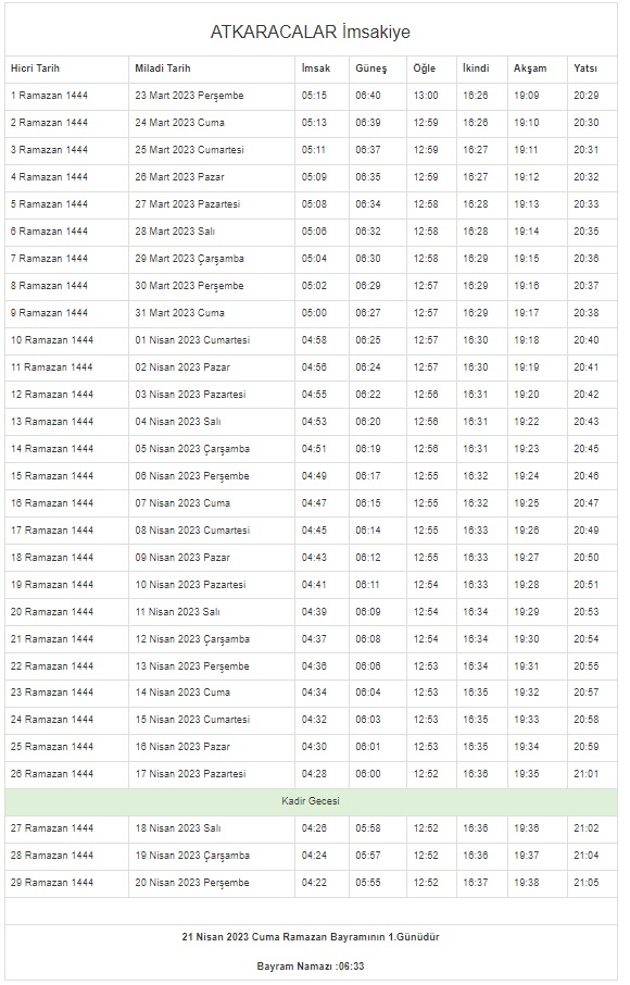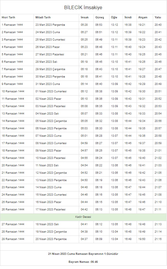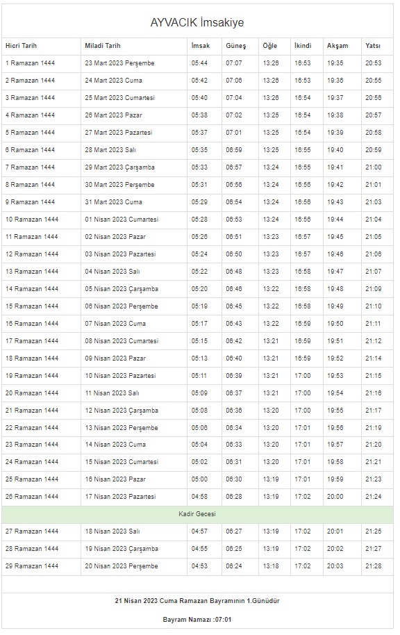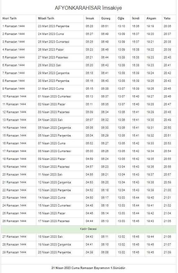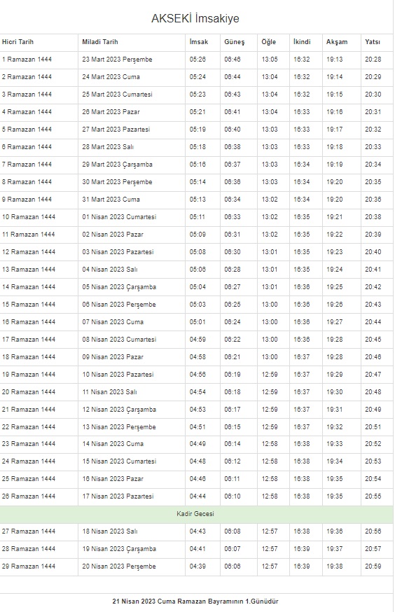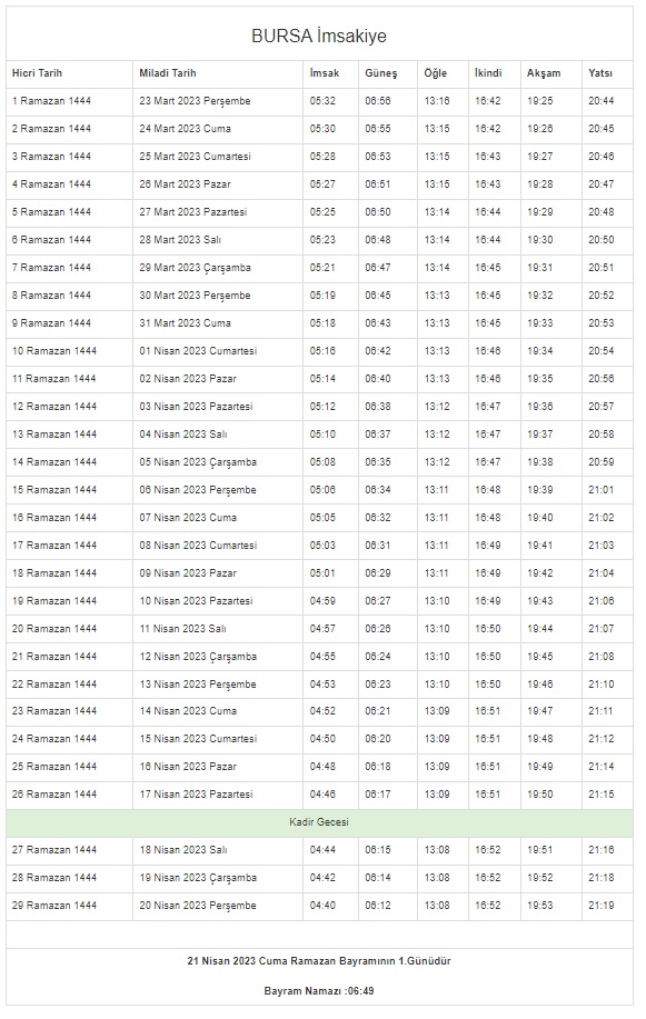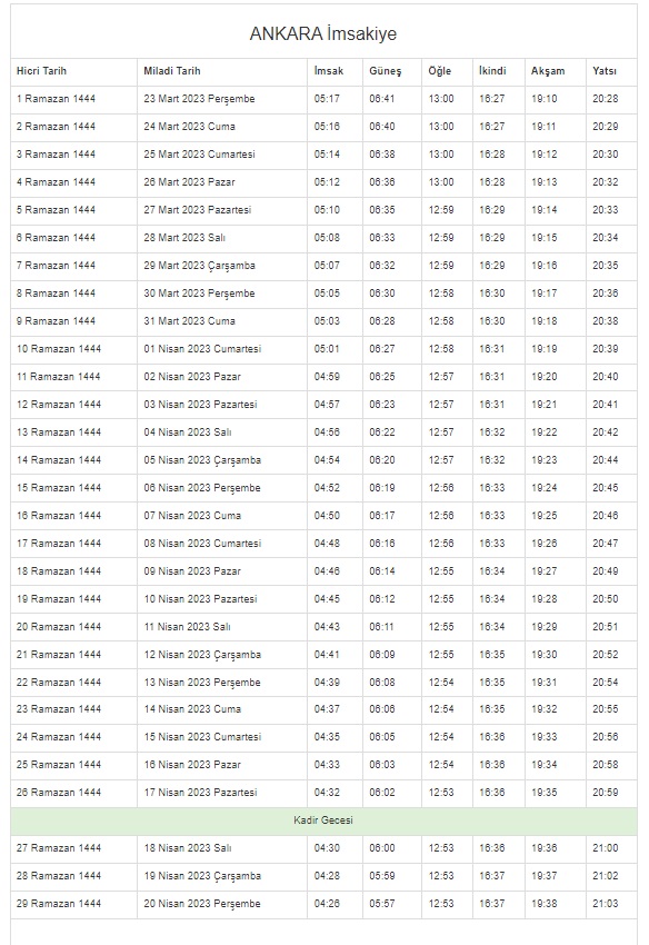 İstanbul, Ankara, Kocaeli, Kayseri, Konya, Bursa... Ramazan İmsakiyesi 2023 | DİYANET 81 il 29 GÜN sahur vakti (imsak) - iftar saatleri!