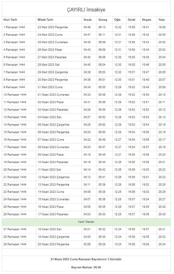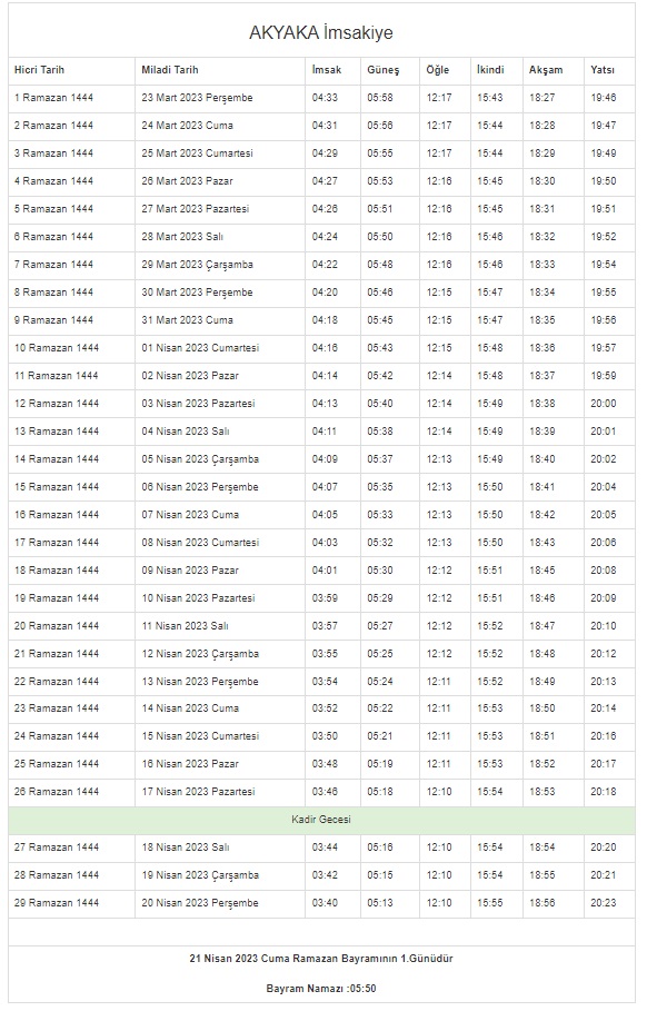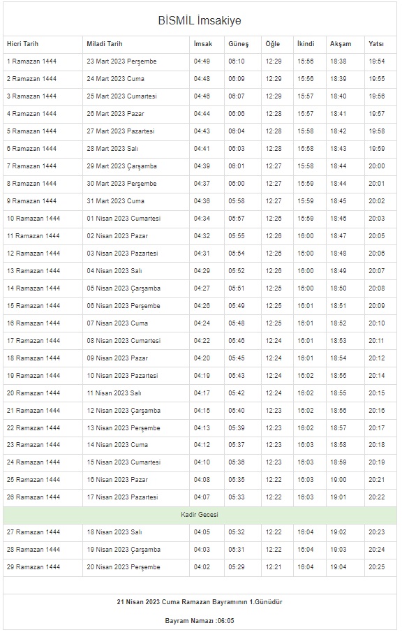 İstanbul, Ankara, Kocaeli, Kayseri, Konya, Bursa... Ramazan İmsakiyesi 2023 | DİYANET 81 il 29 GÜN sahur vakti (imsak) - iftar saatleri! 43