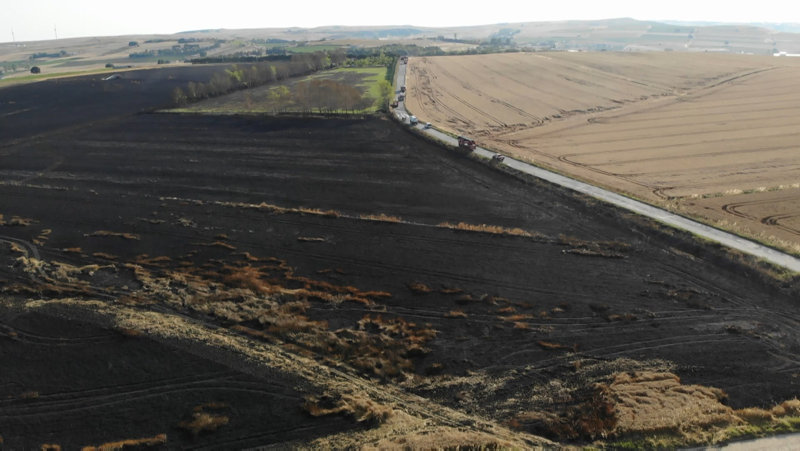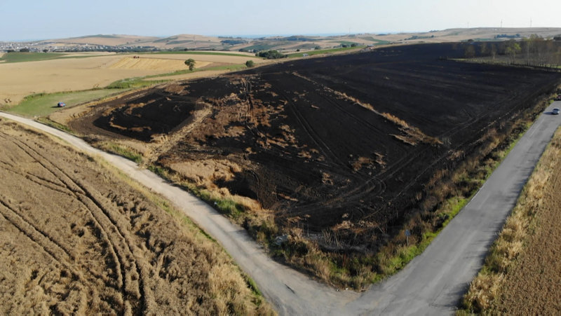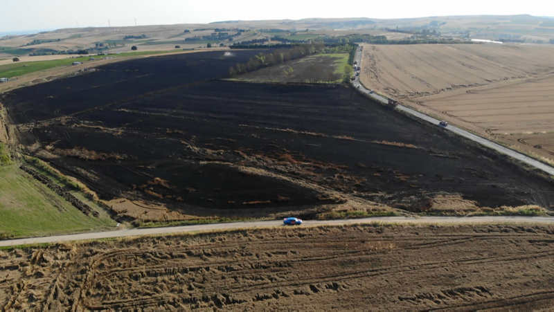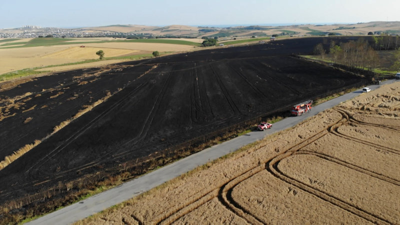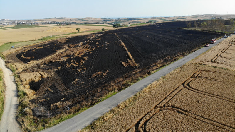 İstanbul Çatalca'da 200 dönümlük buğday tarlası küle döndü! Havadan görüntülendi