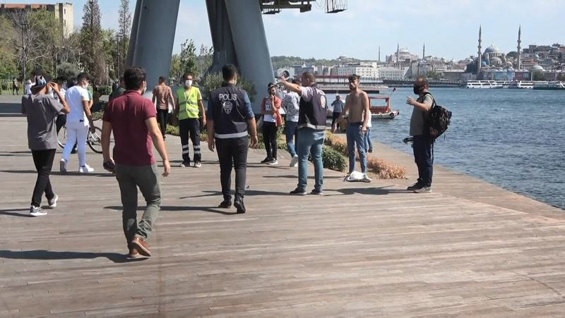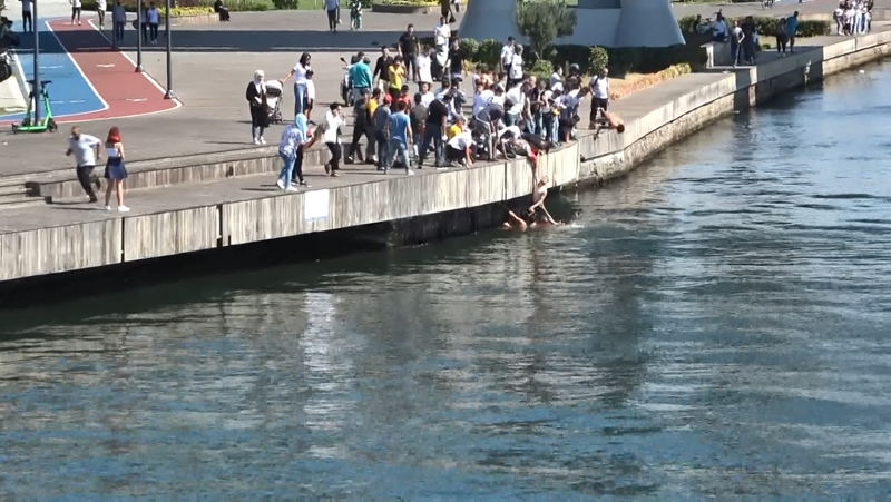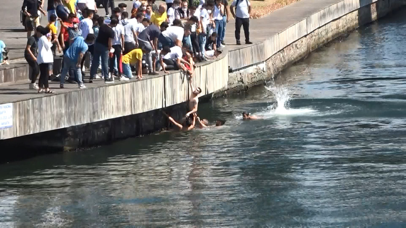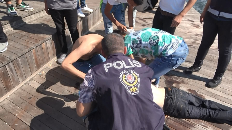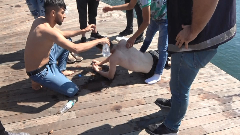 Suda çırpınırken koluna bağlanan kemer ile kıyıya çıkartılan kişiye ilk müdahaleyi olay yerinde bulunan polis ekipleri yaptı.