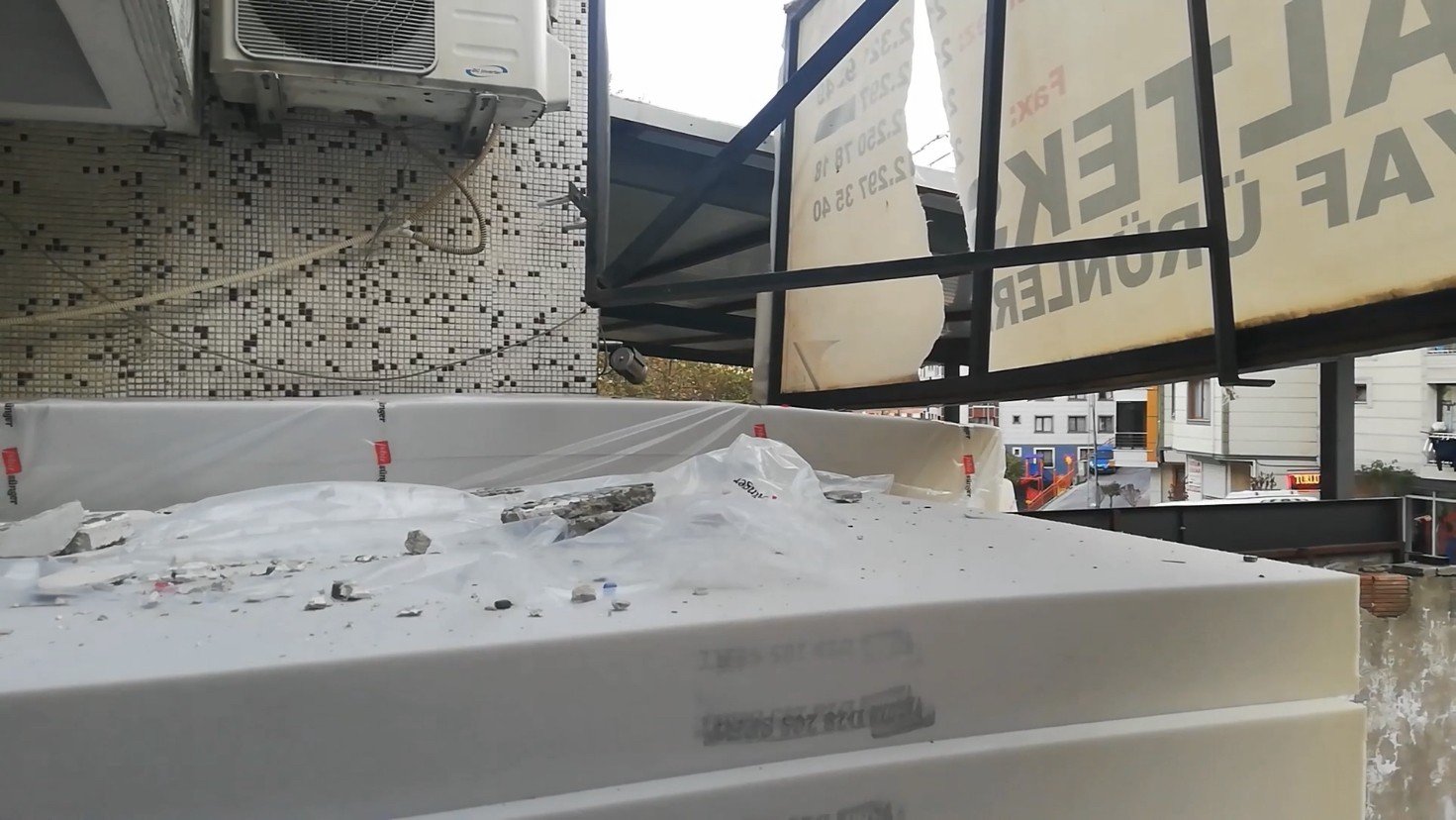 Dehşet anları ise güvenlik kameralarına saniye saniye yansıdı. Görüntülerde, aşağıya düşen kadın tabelaya çarpıyor. Tabelayı yırtan kadın süngerden sektikten sonra yere savruluyor. Olayı gören ve sesleri duyan vatandaşlar koşarak olay yerine geliyor.