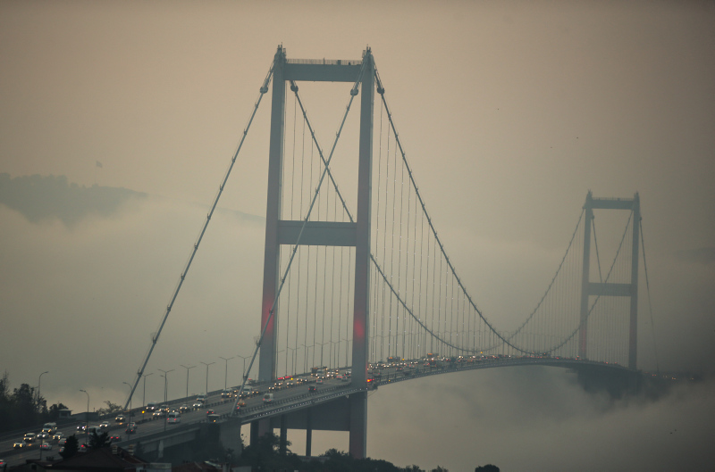 Öte yandan sis, İstanbul Boğazı'nda güzel manzaralar da yarattı. 15 Temmuz Şehitler Köprüsü'nde sis nedeniyle büyülü manzaralar oluştu.