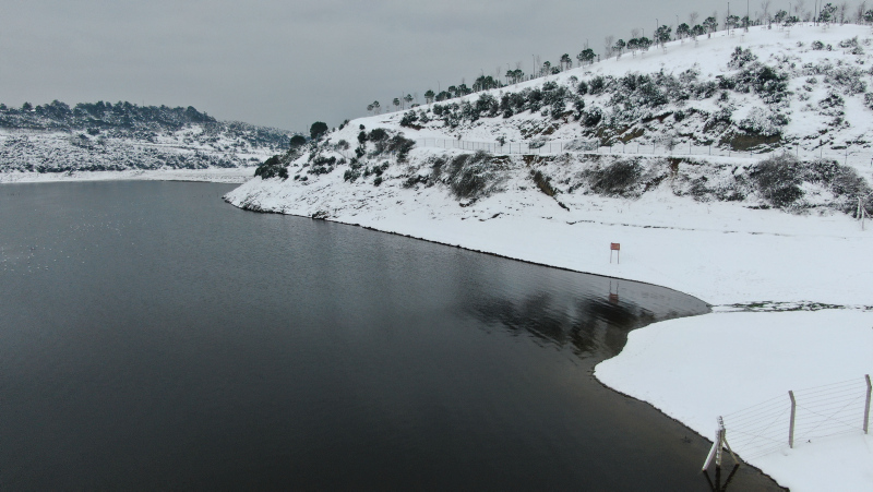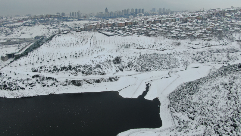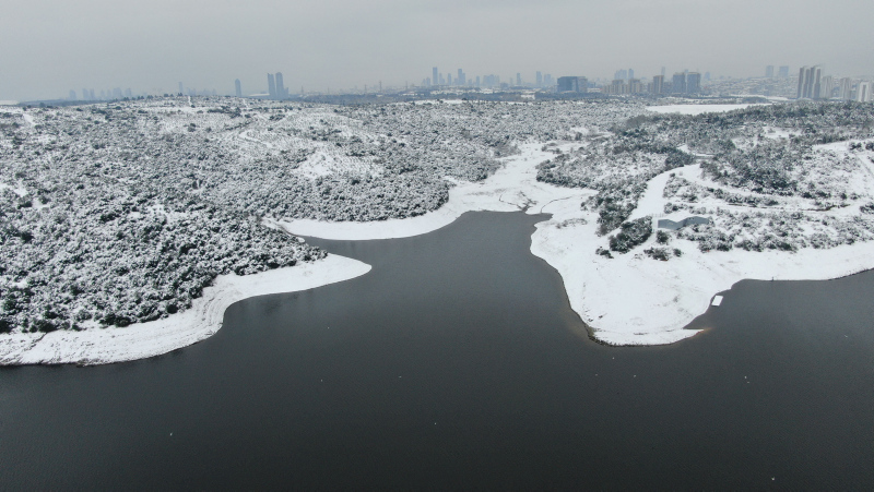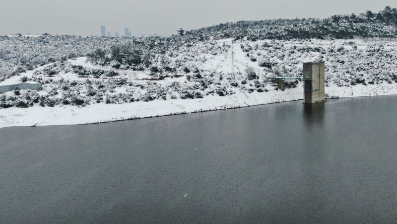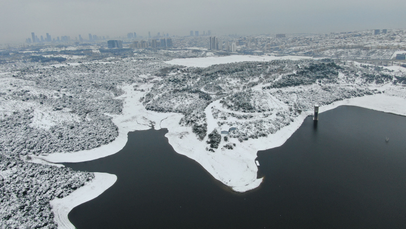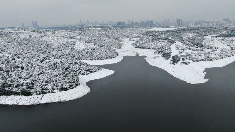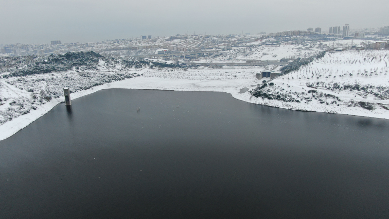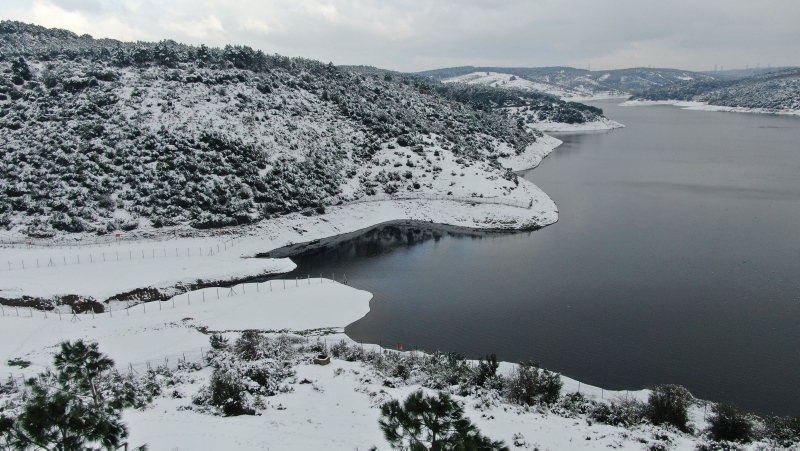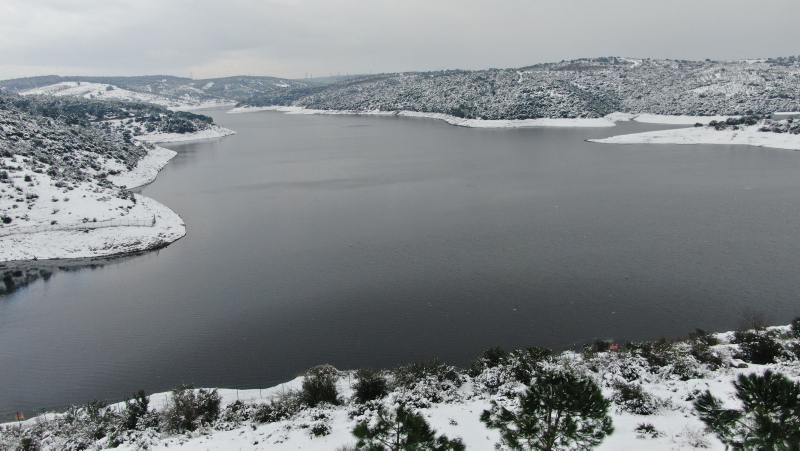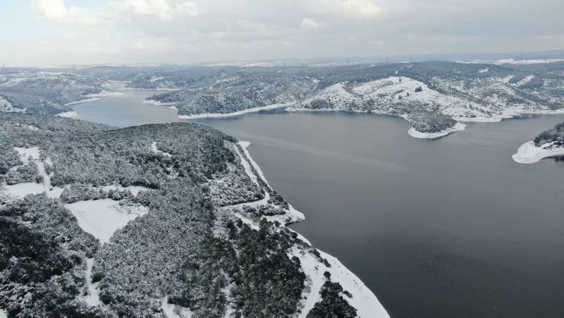İstanbul'da etkili olan kar yağışının ardından barajlar ve çevresi beyaz örtüyle kaplandı. Karların erimesiyle birlikte baraj doluluk oranlarında büyük artışlar bekleniyor. İstanbul'un barajlarındaki doluluk oranı bugün itibariyle yüzde 54.68 olarak ölçüldü. Doluluk oranı yüzde 34.65 çıkan Alibeyköy barajı havadan görüntülendi.
